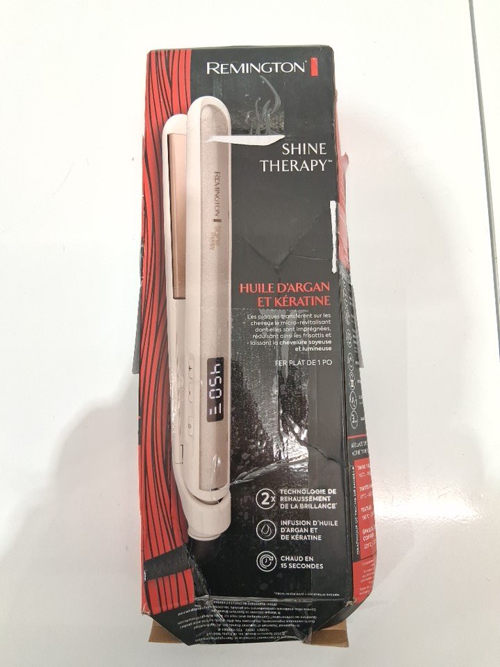 REMINGTON SHINE THERAPY FLAT HAIR STRAIGHTENER IRON INFUSED WITH ARGAN OIL & KERATIN - 1"- WHITE (MODEL: S9511)