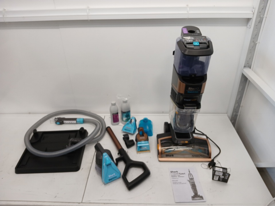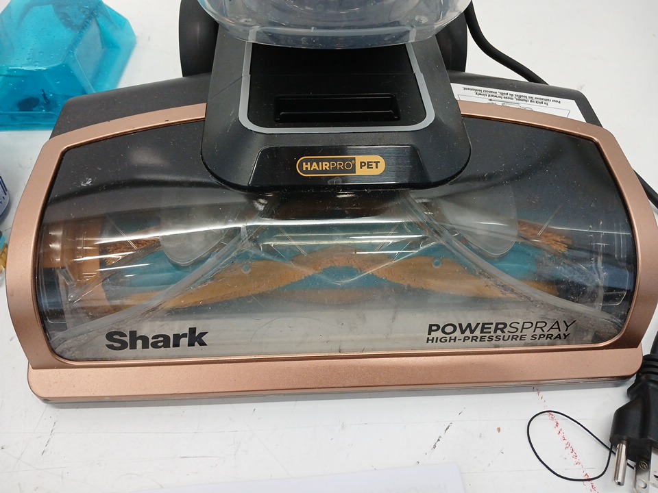 the vacuum has been tested for power and has signs of use with water in the reservoir and some dirt in the brush.