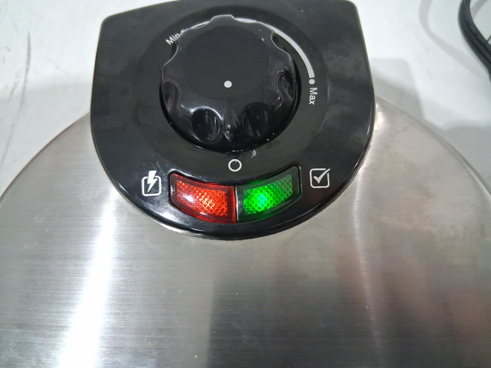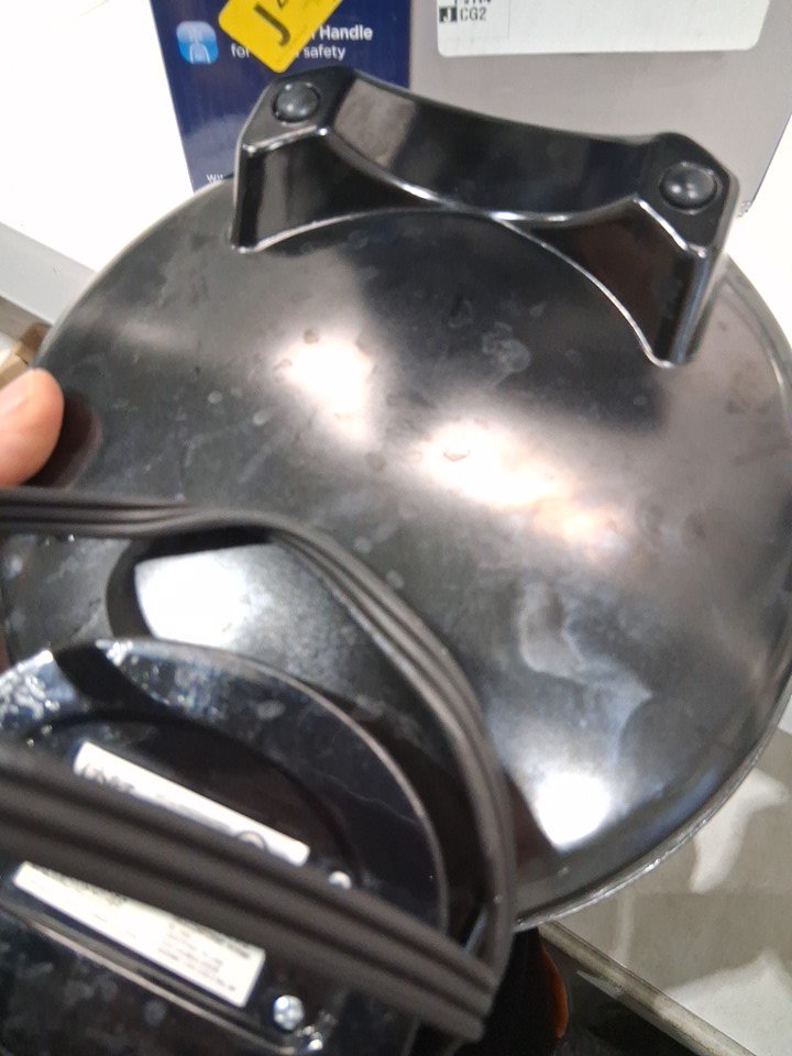 water marks on the back of the item and some oil residue on the cooking plates both indicating prior use