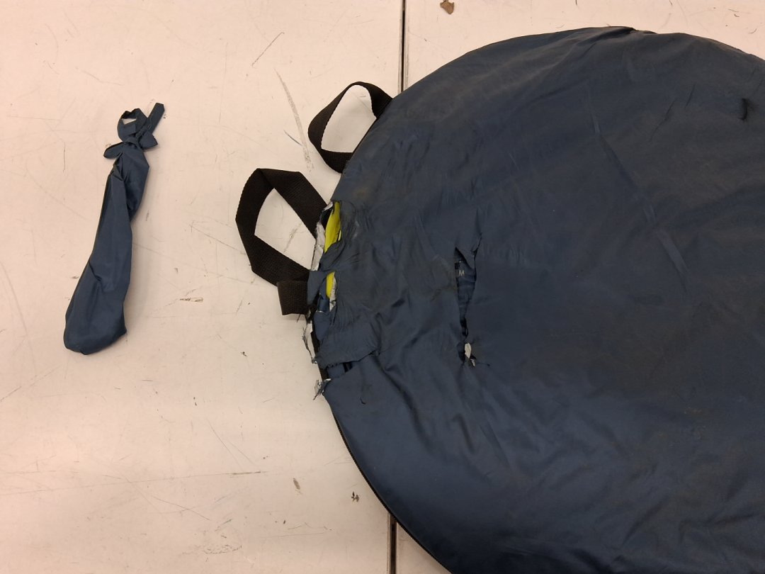Small rip in one side and on carrying case, one handle half detached on carrying case, see photos