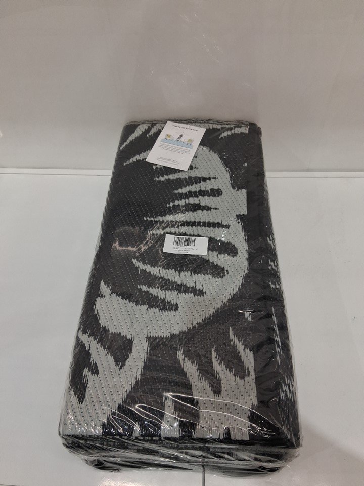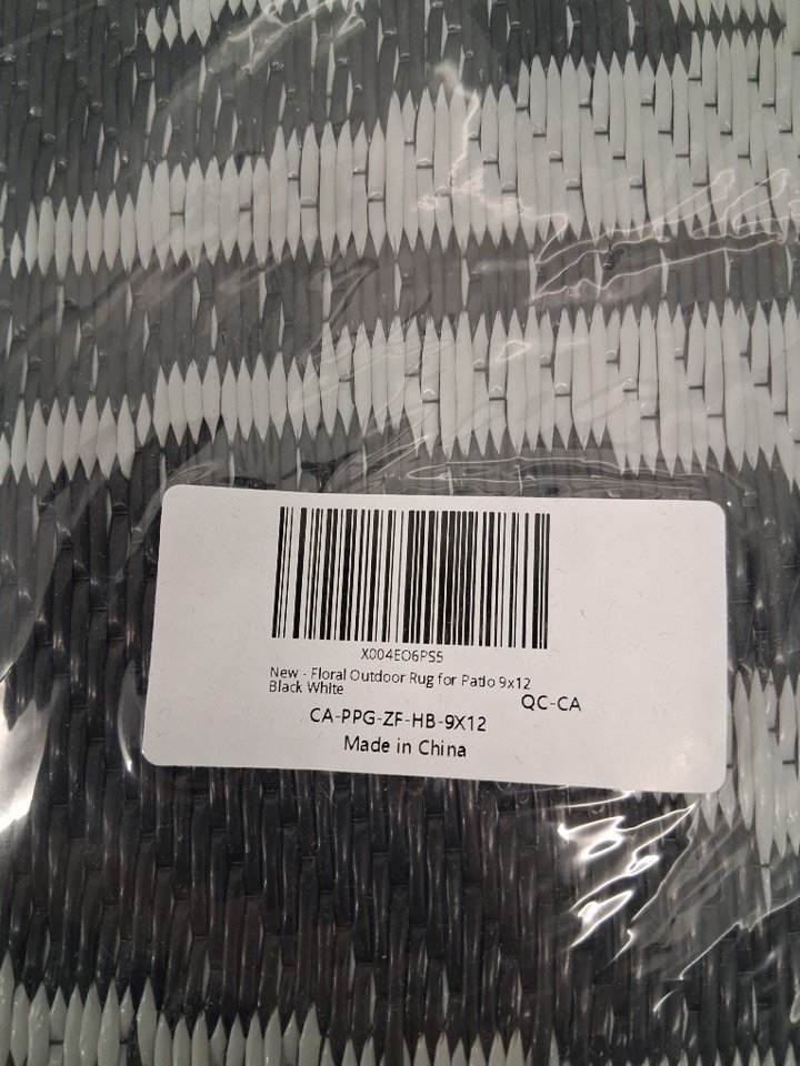 FLORAL Waterproof Outdoor Carpet Patio Rug - 9FT X 12FT - BLACK/WHITE/GREY (model: ca-ppg-zf-hb-9x12)