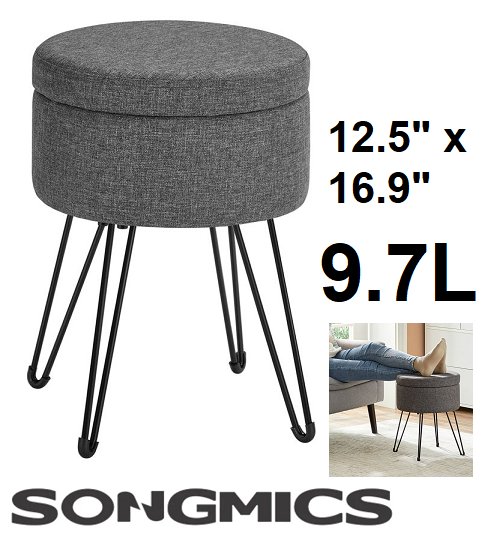 SONGMICS Round Storage Stool living room - 9.7L 12.5" x 16.9" - grey/black
