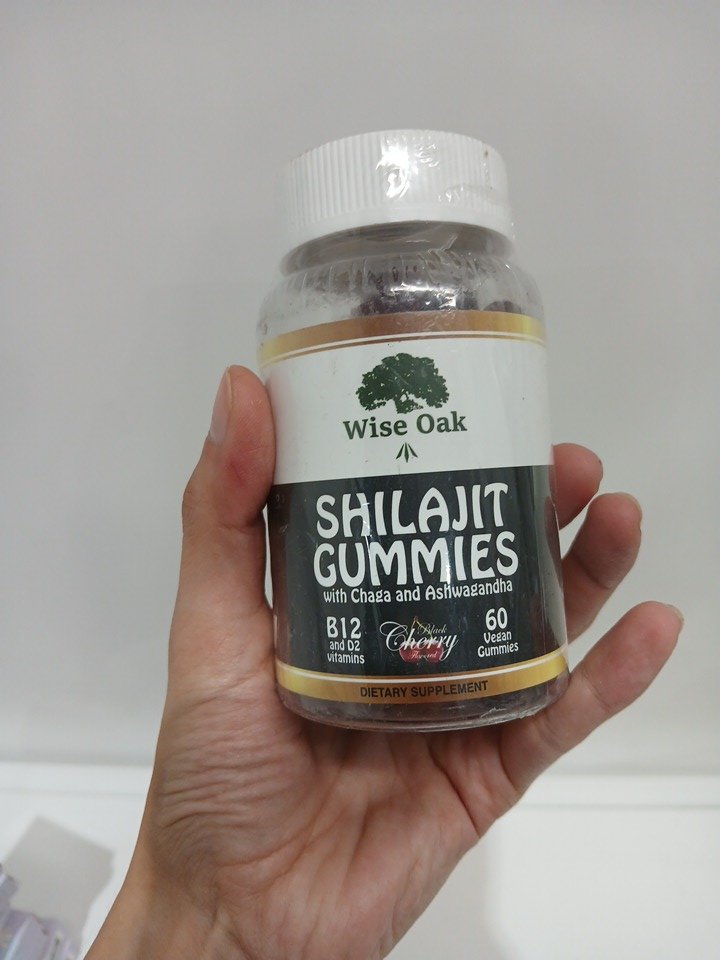 (60 gummies) wise oaks shilajit gummies with chaga and ashwagandha dietary supplement - cherry flavour -