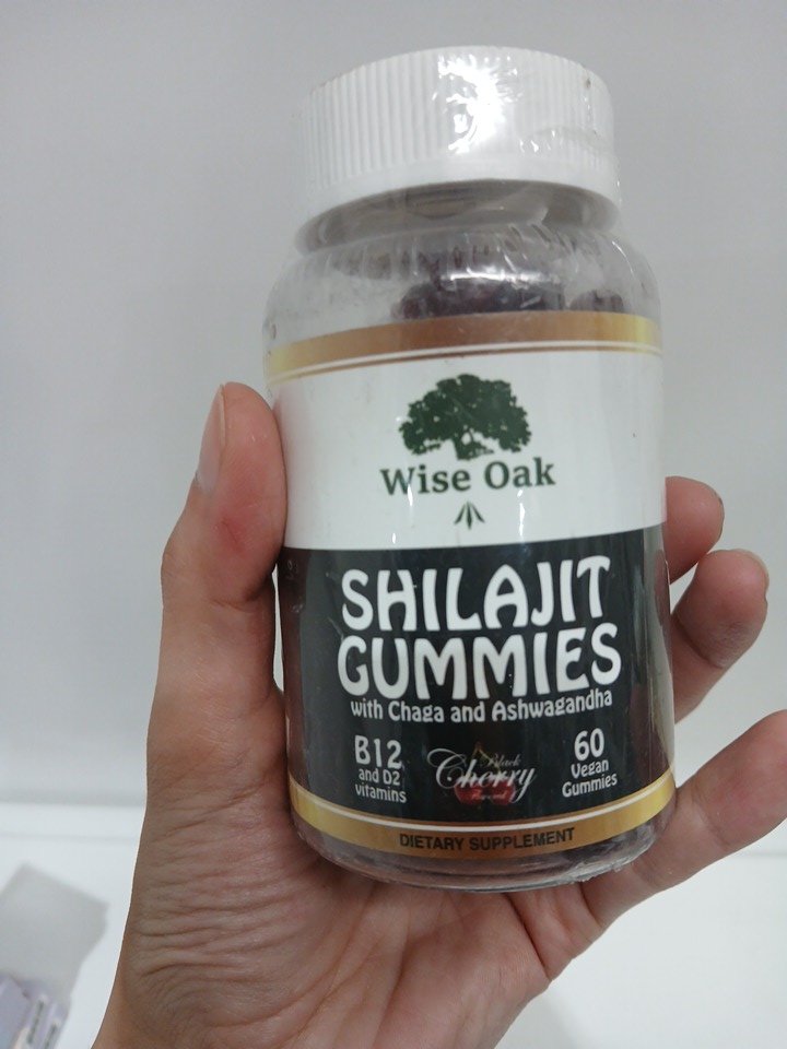 (60 gummies) wise oaks shilajit gummies with chaga and ashwagandha dietary supplement - cherry flavour -