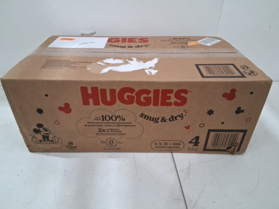 186pk huggies snug and dry diapers - size 4 - 22lb to 37lb - disney mickey mouse