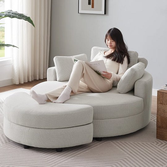 brayden studio dashton Upholstered Barrel Chair with Storage Ottoman - 51" - Beige (Model: NEW-2306-BEIGE)
