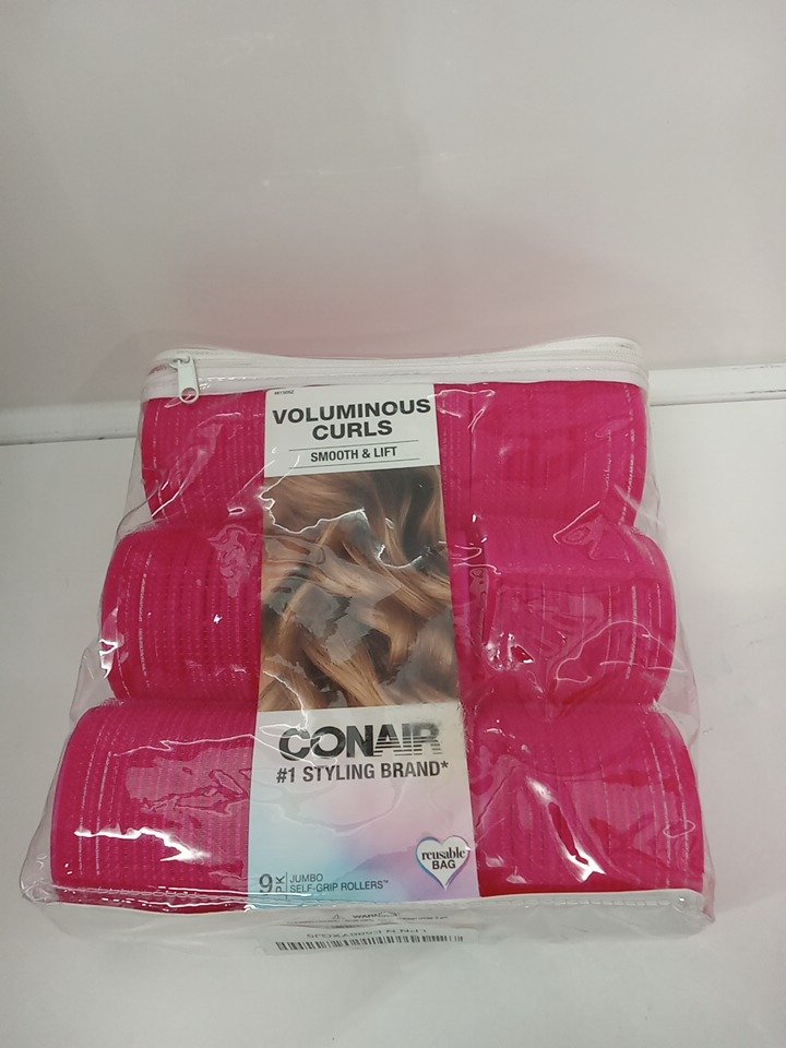 9PK CONAIR SELF GRIP VOLUMINOUS CURLS HAIR ROLLERS - 2.5" (JUMBO) - PINK (MODEL: 61505)
