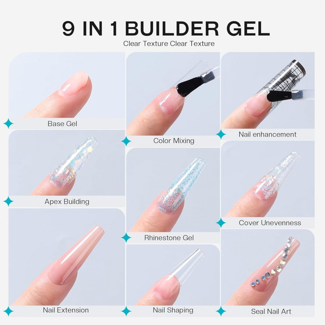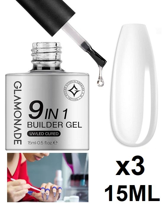 3 Glamonade 9-in-1 uv LED curing Builder Gel for acrylic/false nails - 15ml each - clear