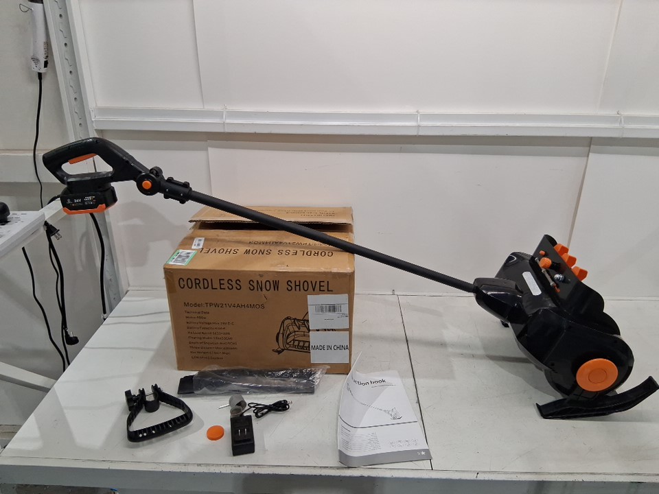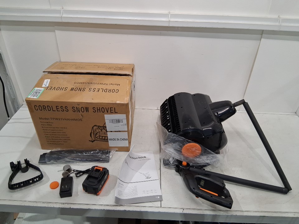 The snow shovel has some scratches and scuff marks on it indicating previous use (see photos) Tested for power