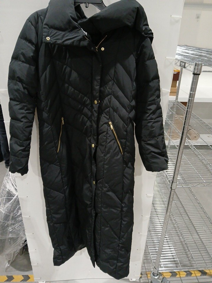 women's Cole Haan Taffeta Down With Overlapping Convertible Collar Chevron Quilt coat - medium - black