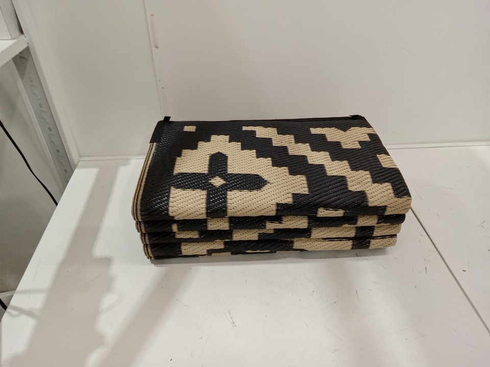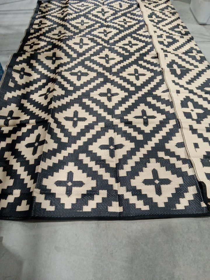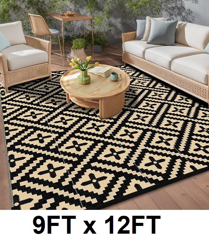 insun outdoor geometry plastic straw rug - 9ft x 12ft - beige/black
