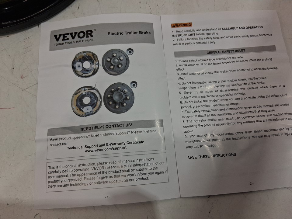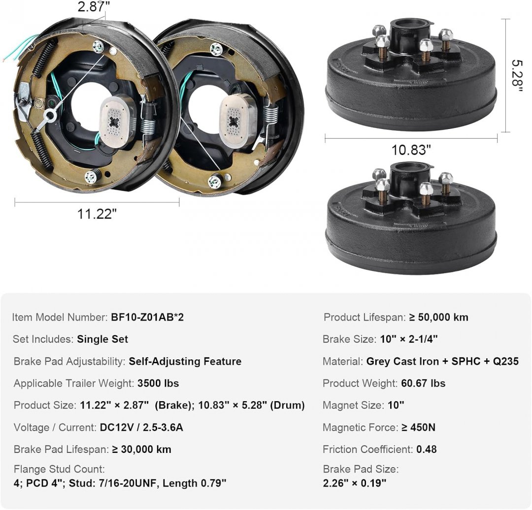 2pk VEVOR Trailer Hub Drum Kits - for 3500 lbs Axle - 4.5" B.C. with 10" x 2.25" Electric Brakes (model: ‎BF10-Z01AB*2)