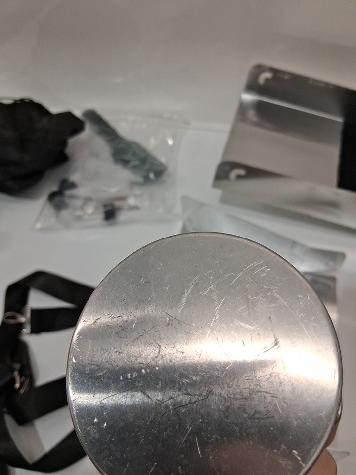 please note the product was discovered to be covered in scratches, scuff marks, and watermarks, this can be cleaned, please see photos for more details