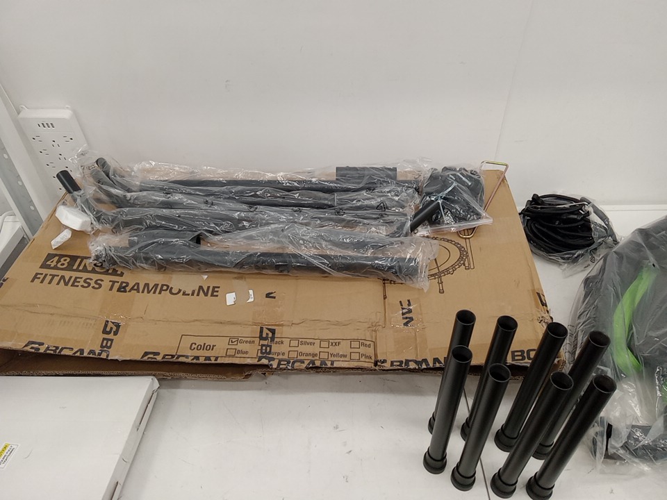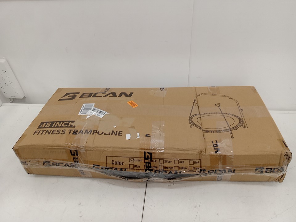 BECAN Foldable Mini Trampoline with Adjustable Handle Bar, Silent Bungee Cord, Stable & Quiet Exercise Rebounder- 48" - BLACK / green- (model: TX-6232CU)