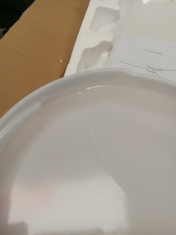 Cut in the wood blades and the light cover is cracked (see pictures)