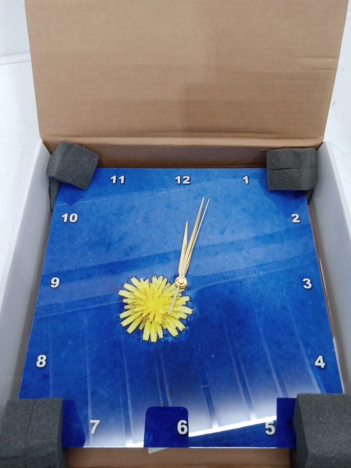 Slim floral wall clock - 13" x 13" - blue/yellow