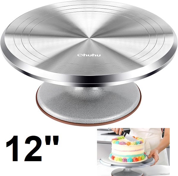 Ohuhu Aluminum cake turntable decorating stand - 12" - Silver/brown
