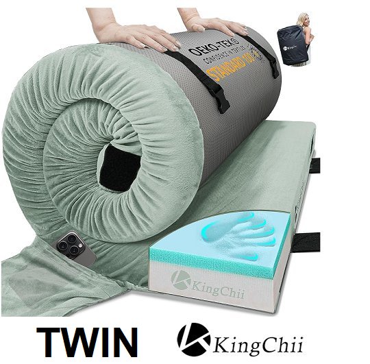 KingChii Memory Foam Camping Mattress with Waterproof Cover & Travel Bag- twin - GREEN\BLUE