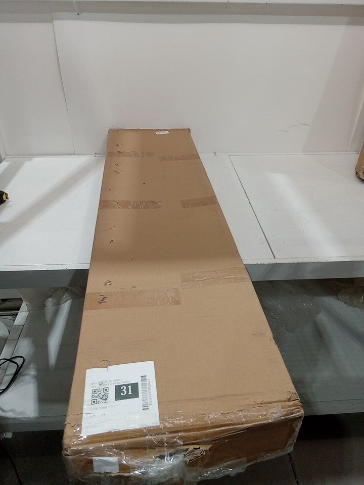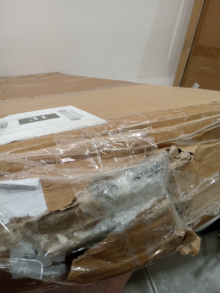 Railing has come through the box in one spot and is scuffed. Otherwise box is still sealed.