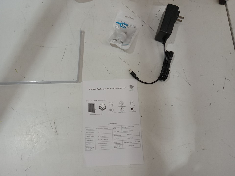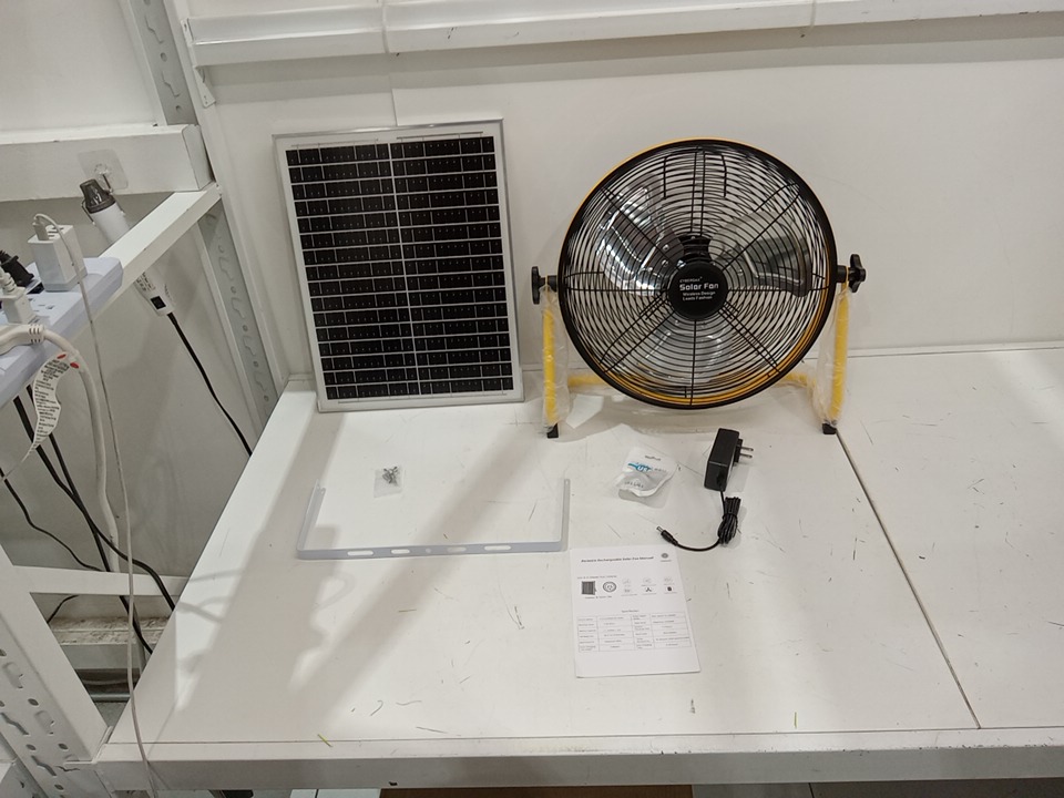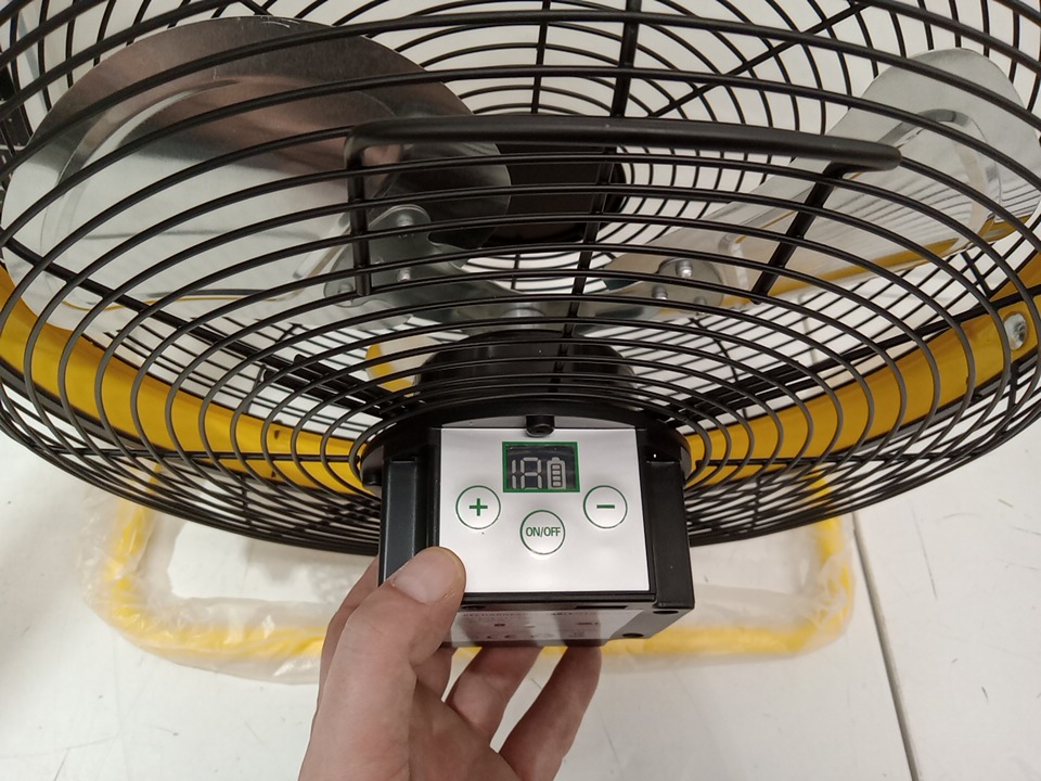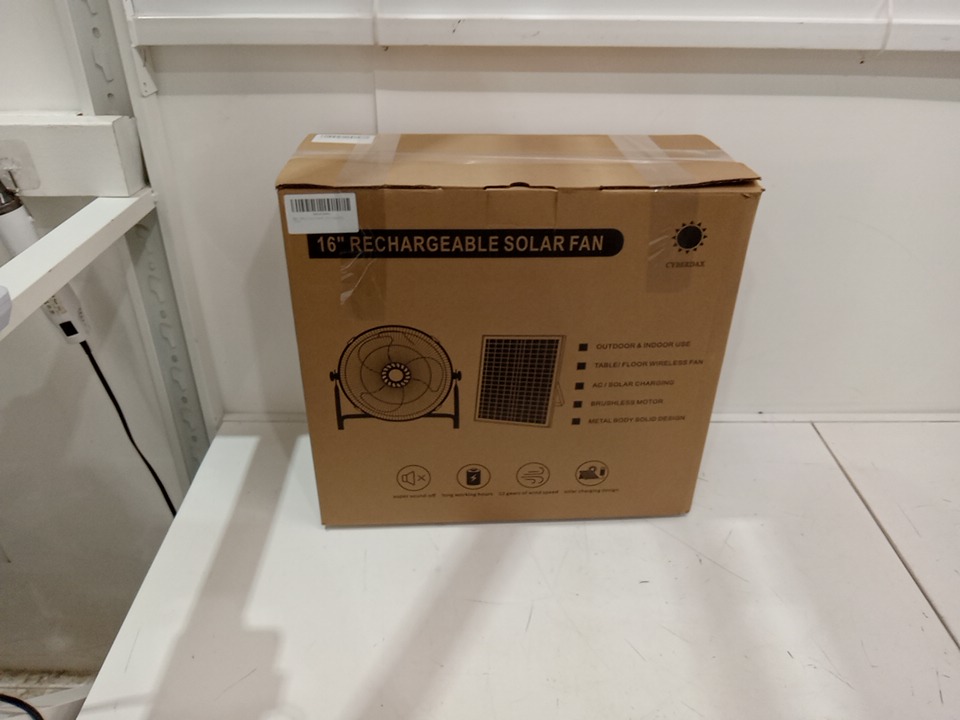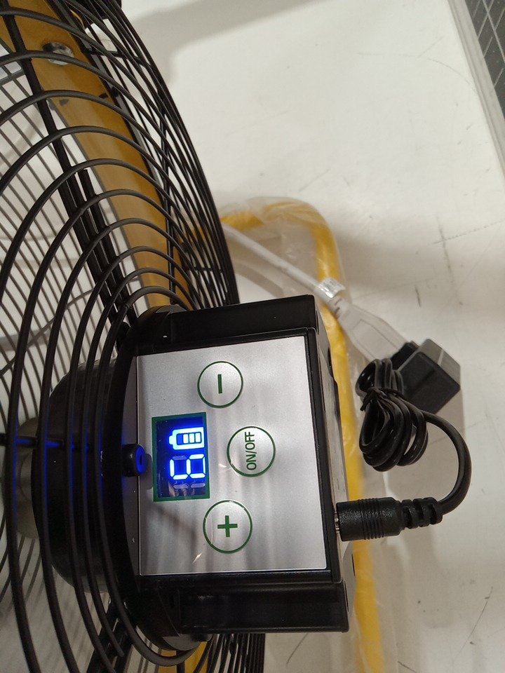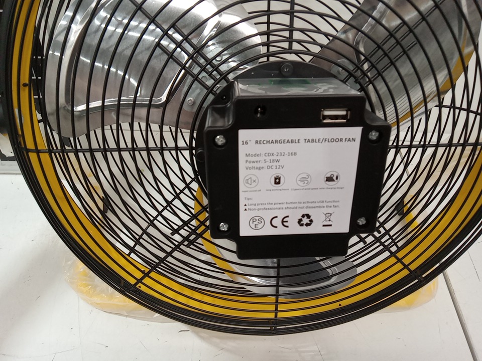 cyberdex portable rechargeable solar fan - 16" - 12 speeds - 11.1v - up to 50hrs runtime - black/yellow (model: cdx-232-16b)