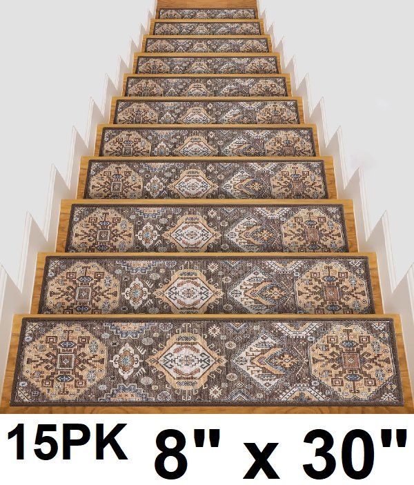 15pk ywaqmct non-slip washable stair treads - 8" x 30" - brown
