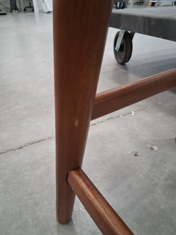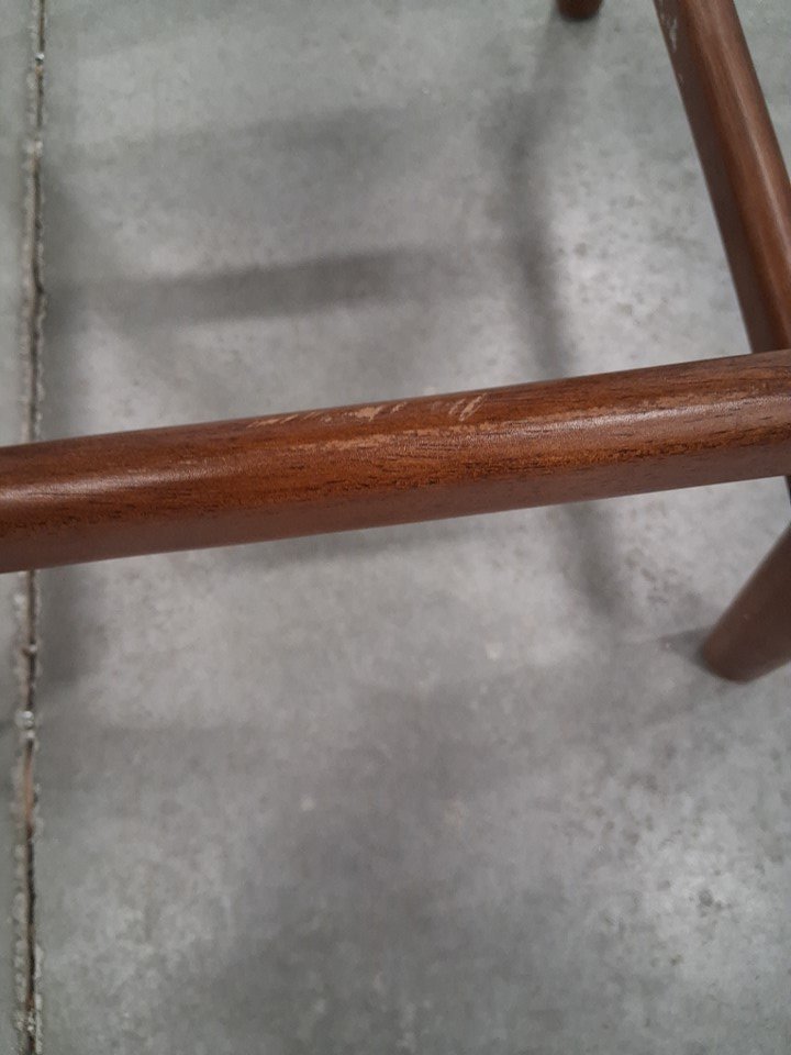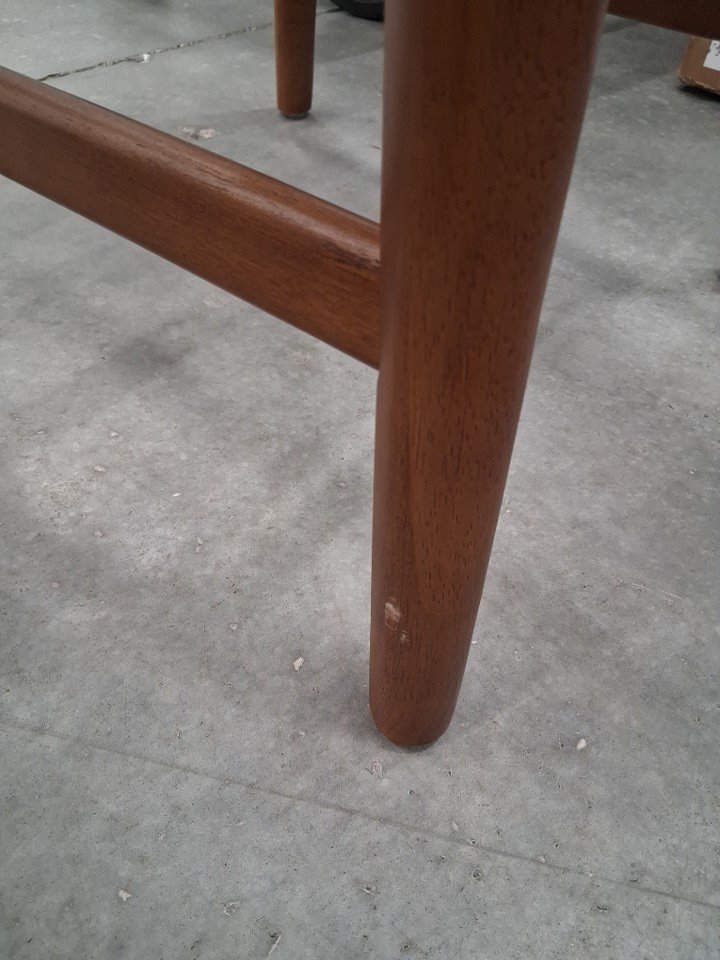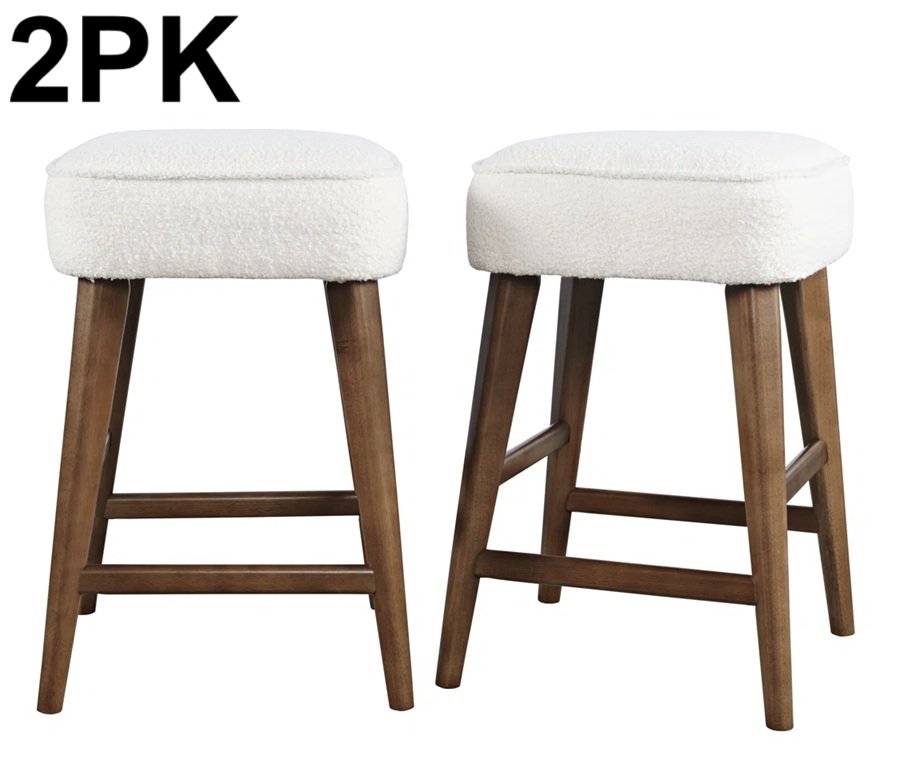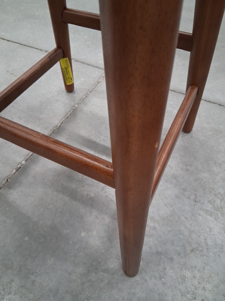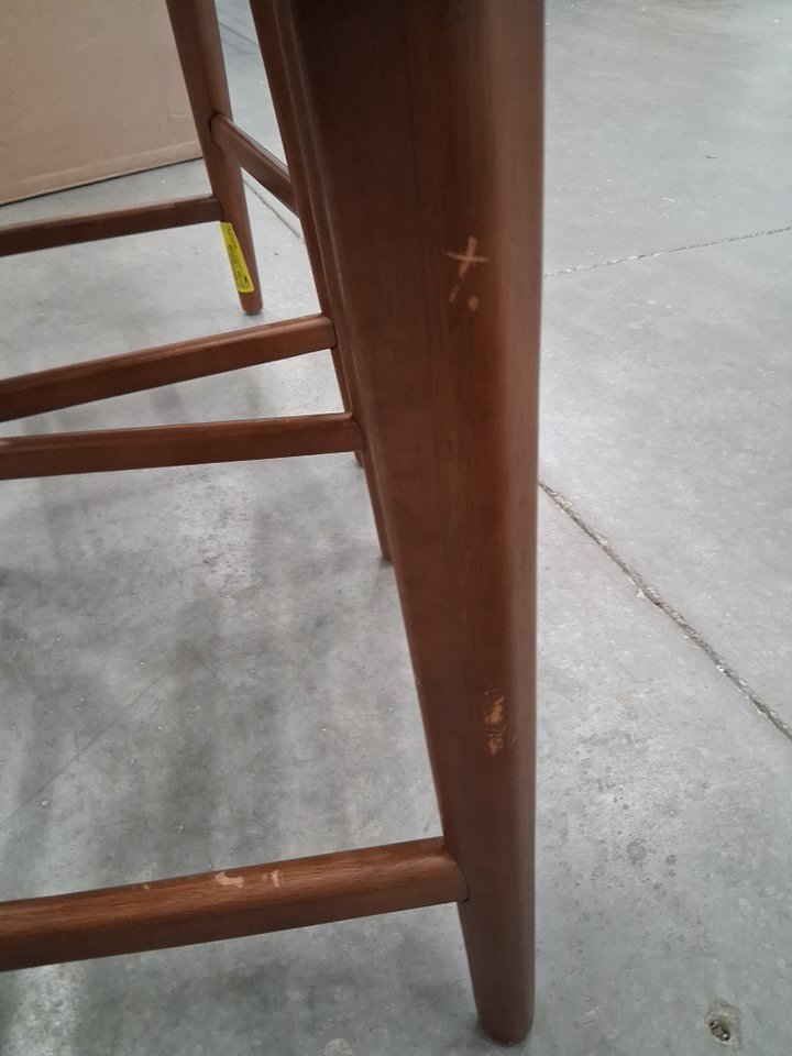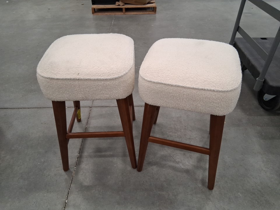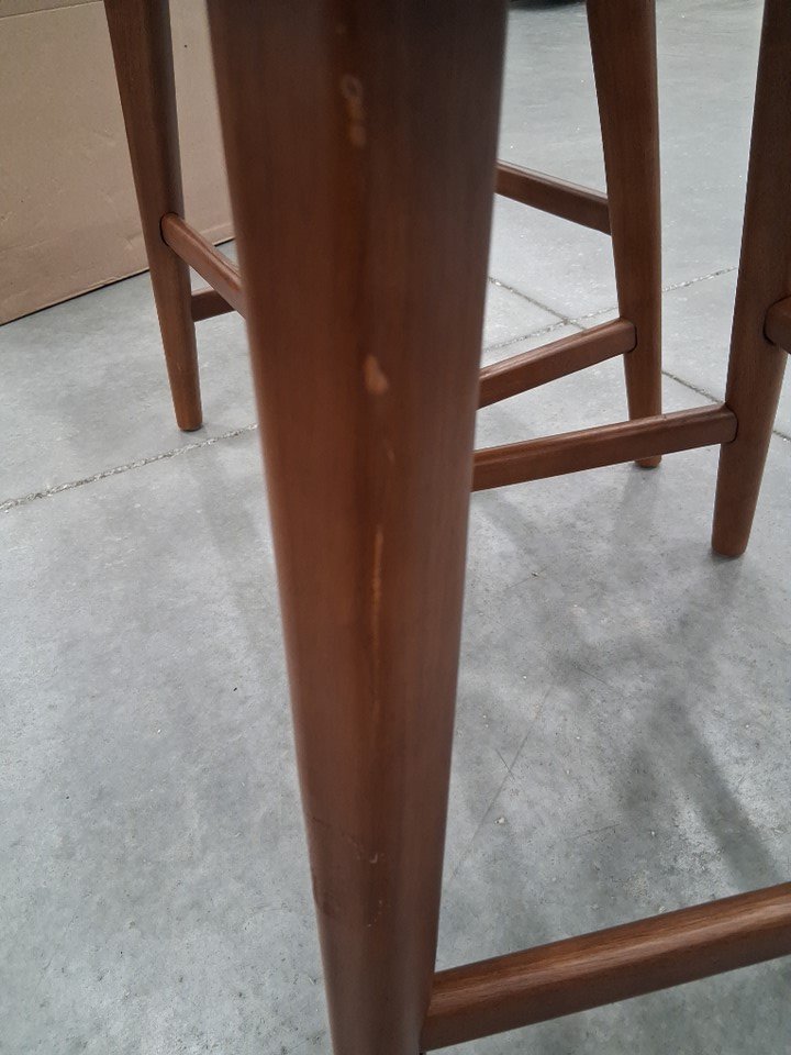 As a result of shipping prebuilt with no packaging, there are numerous small scuffs on the legs, and some dirt buildup on the cushions - see photos. Additionally, the screws holding the legs in place seem like they could use some tightening. Other than this light cosmetic damage, the stools appear unused and in good condition.