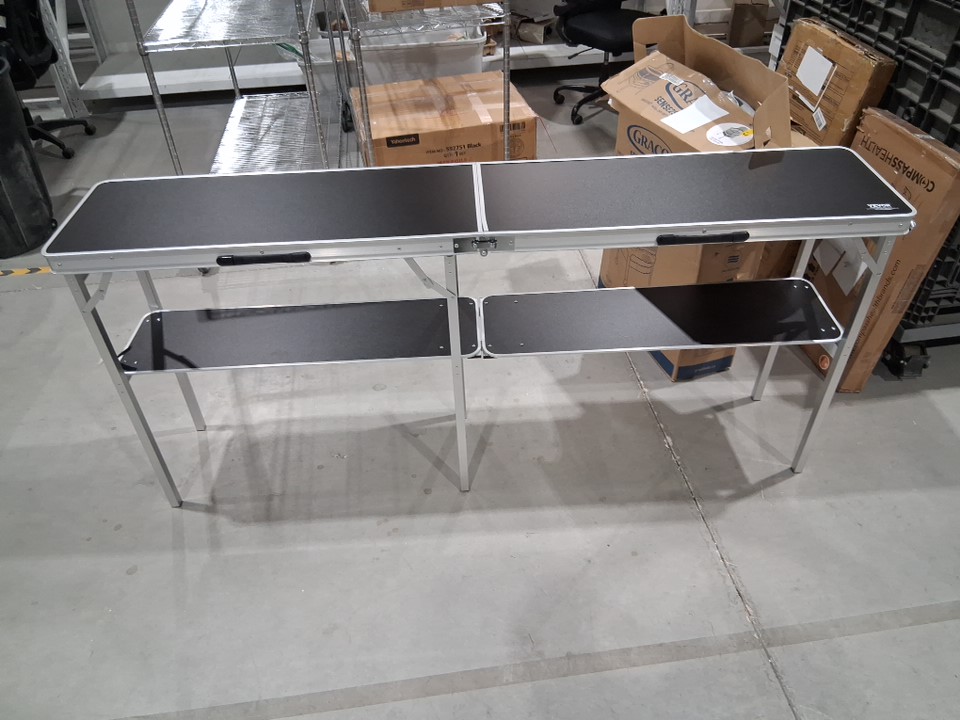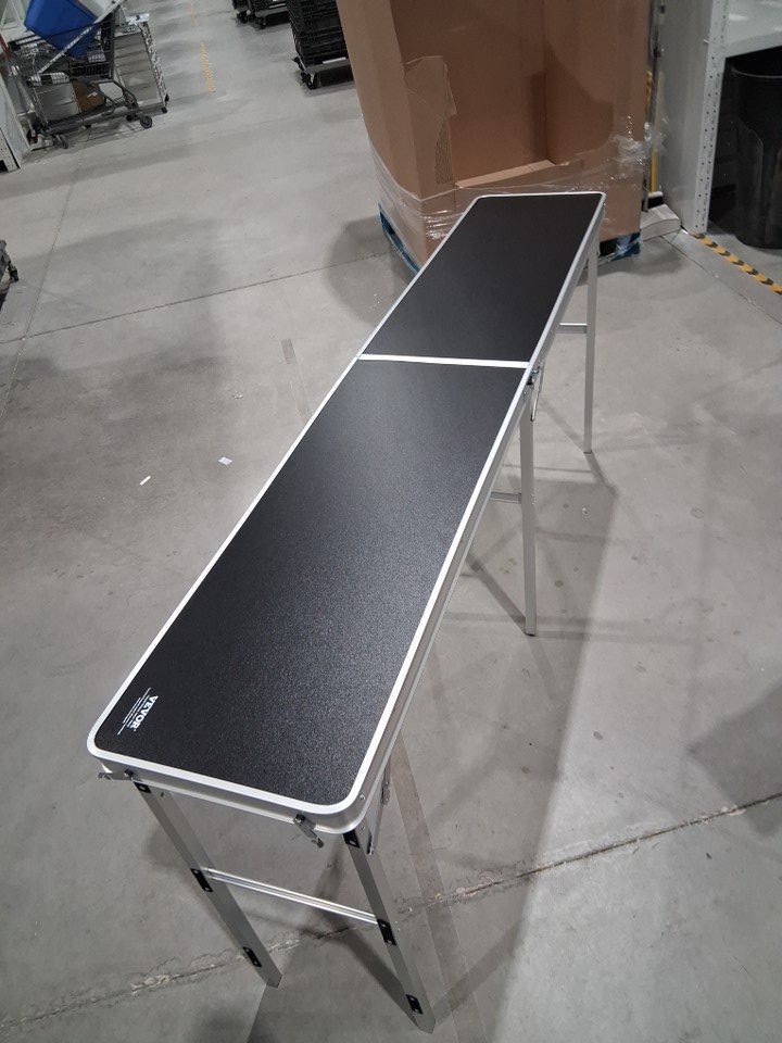table is missing the black wrap around seen in cover photo there is some bent parts of the table but table is still able to be set up please see photos