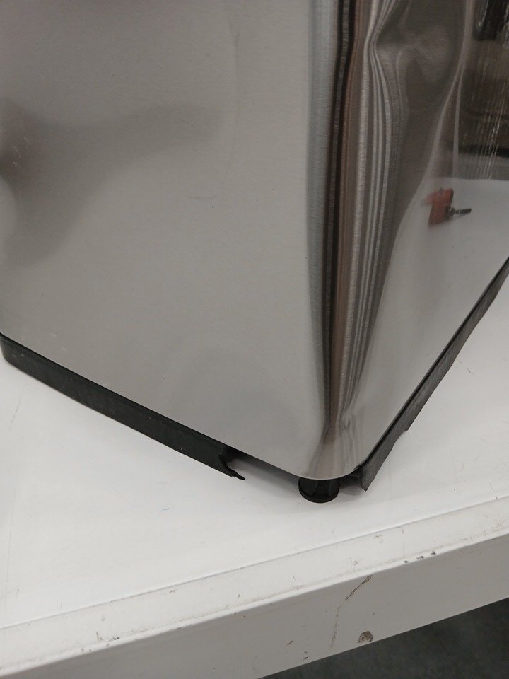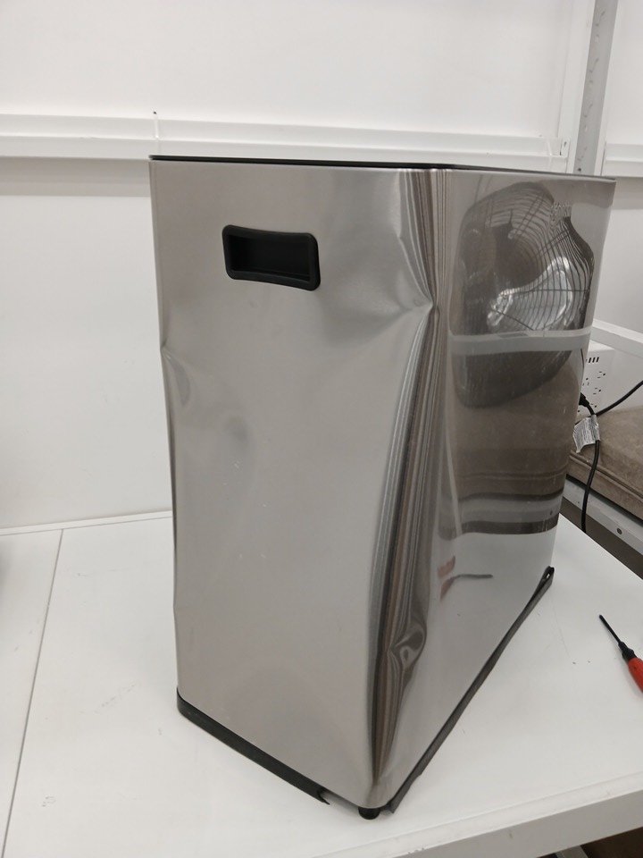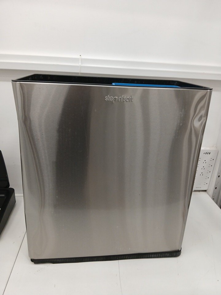 Please note there is a series of dents, and damage on the bin. There is also a presence of garbage residue, indicating prior use. We highly recommend giving this product a proper sanitization.