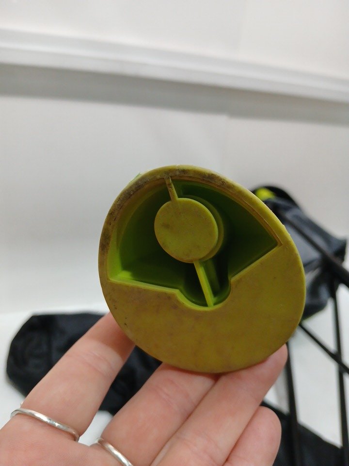 there is dirt/residue & light markings present due to previous use. the carry bag is ripped