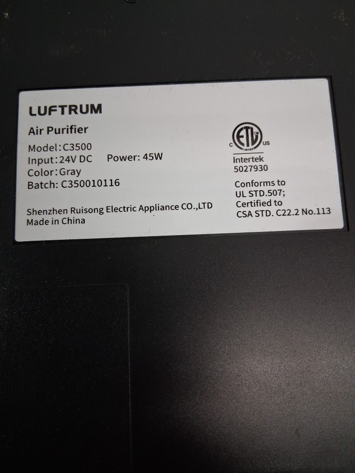 Luftrum Home Air Purifiers With Washable True HEPA Filters - 14.3" x 12.9" x 18.1" For Up To 2250 SQ. FT. - Grey (Model: C3500)