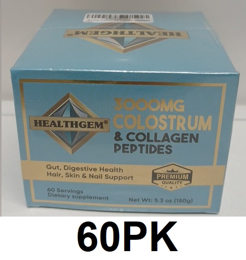 60PK Healthgem 3000mg Colostrum&Collagen Peptides - gut&digestive heath, hair, skin and nail support - 150g