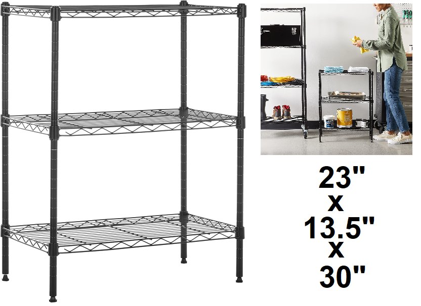 amazon basics Adjustable Heavy Duty Steel Wire Rack - 23" x 13.5" x 30" - blACK