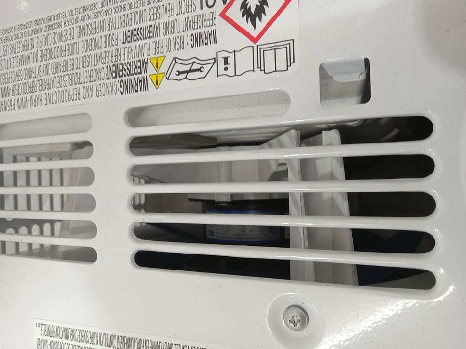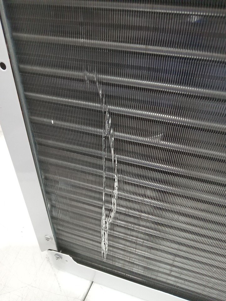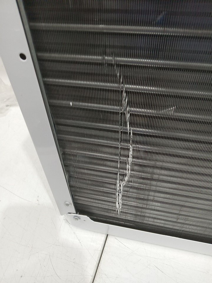 Please note that this product has been previously installed. Back side of the mesh has a dent/scuff marks, we are not sure if this will affect the function of the product. There are minor installation and scratch marks on the mounting hardware and minor scratch marks around the product. Tested for power and motor function only. (Please see photos)