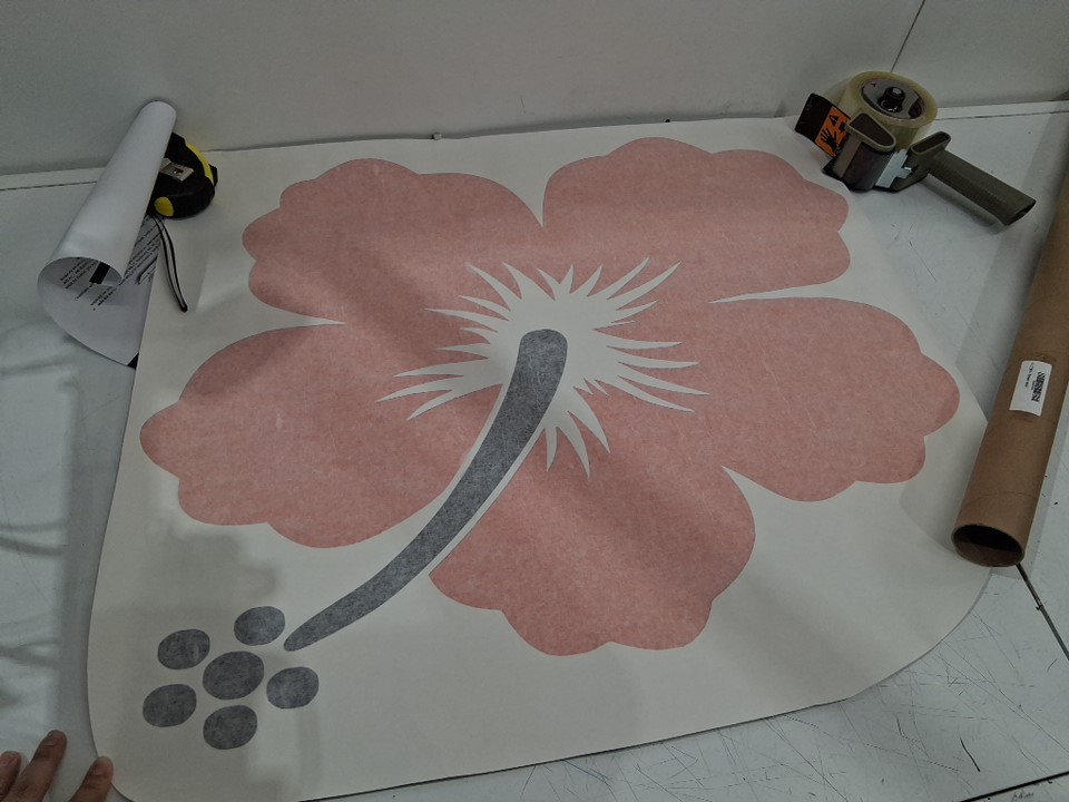 decorative hibiscus flower wall vinyl sticker - 28" x 24" - red/black