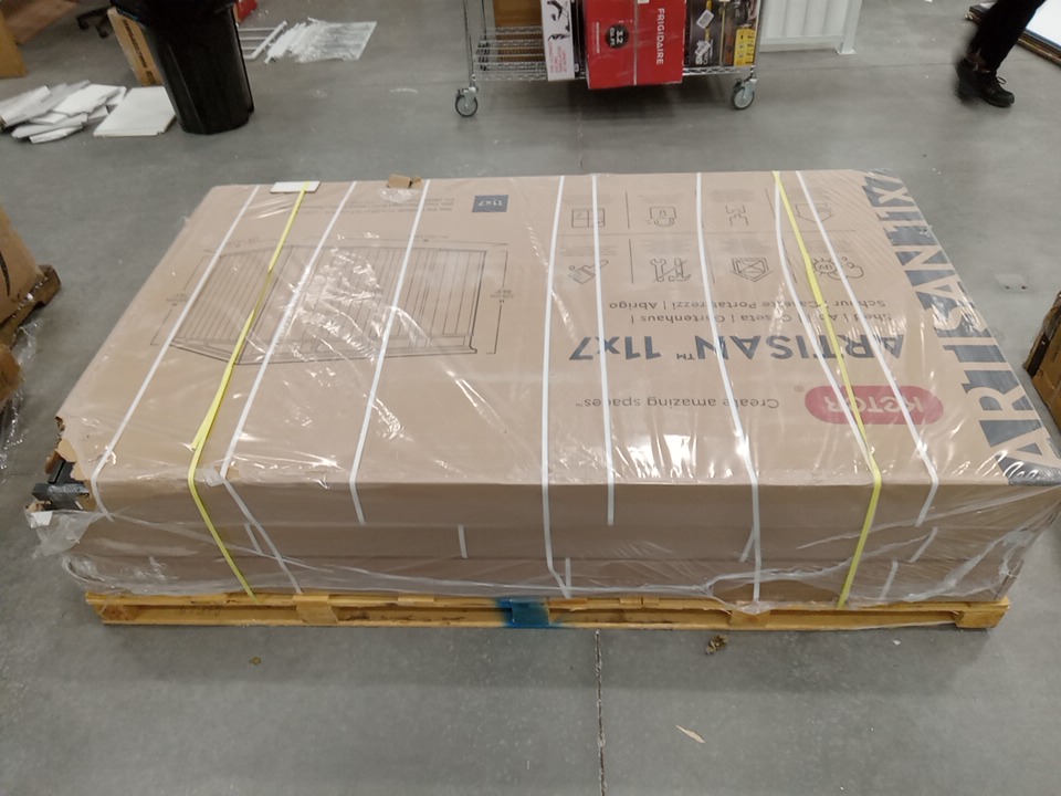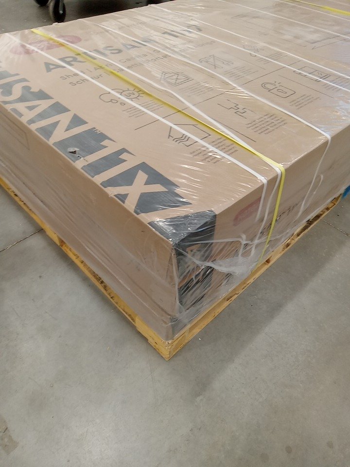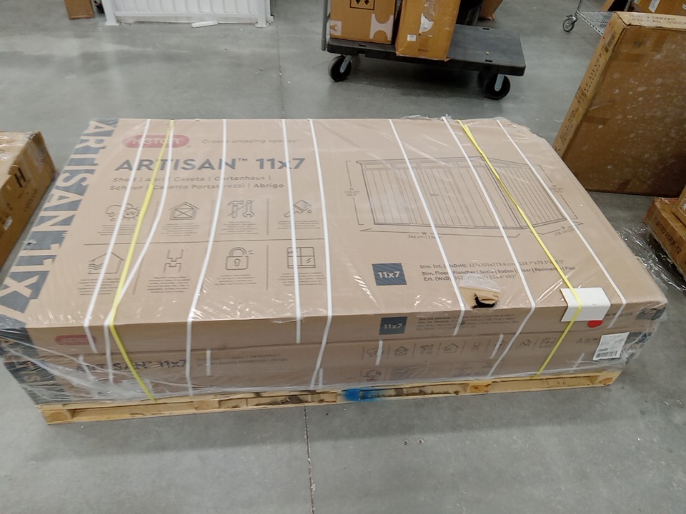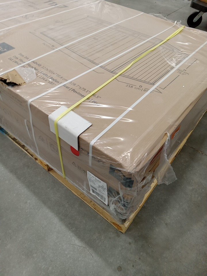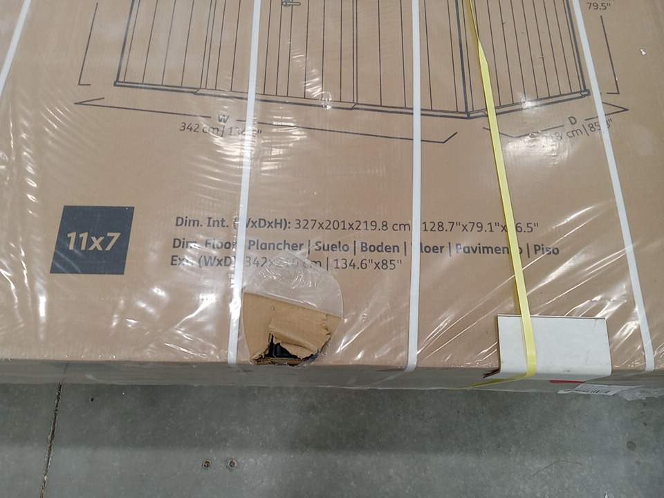 This shed comes in its original packaging, with some cosmetic wear from logistics handling. One of the boxes has a minor tear along one edge of the packaging, but the contents inside are unaffected and remain in excellent, unused condition. All other boxes are brand new, factory sealed, and fully intact. The interior components have been visually inspected to confirm no damage or missing parts, ensuring full assembly capability once unpacked.