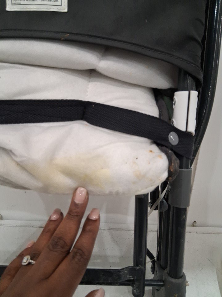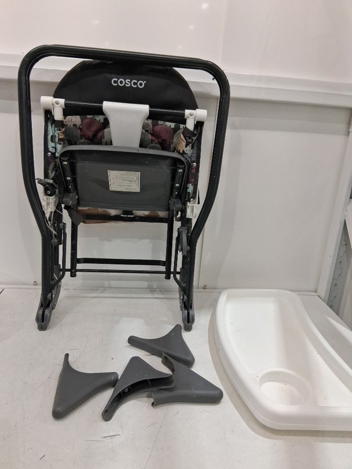 The item has stains on the front and back of the highchair from prior use; see photos.