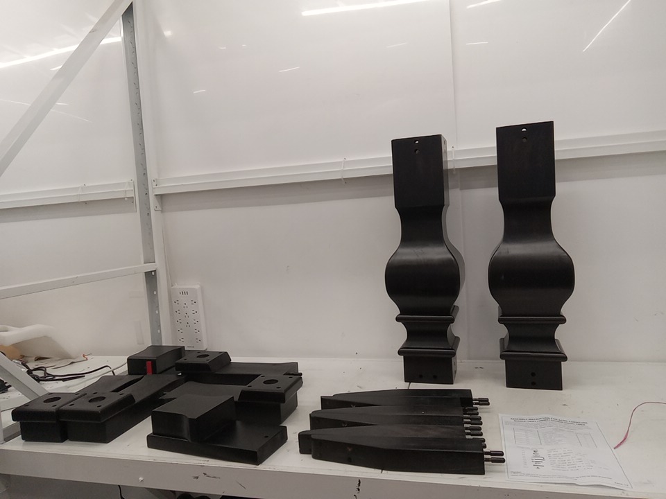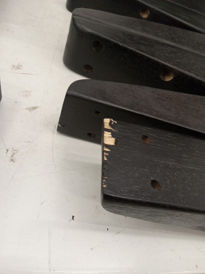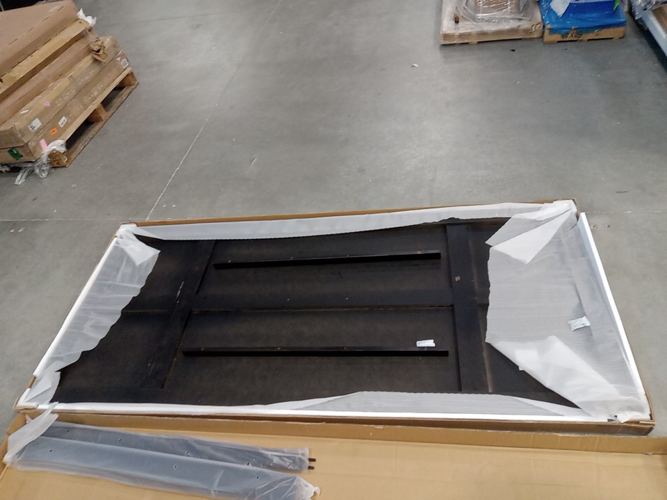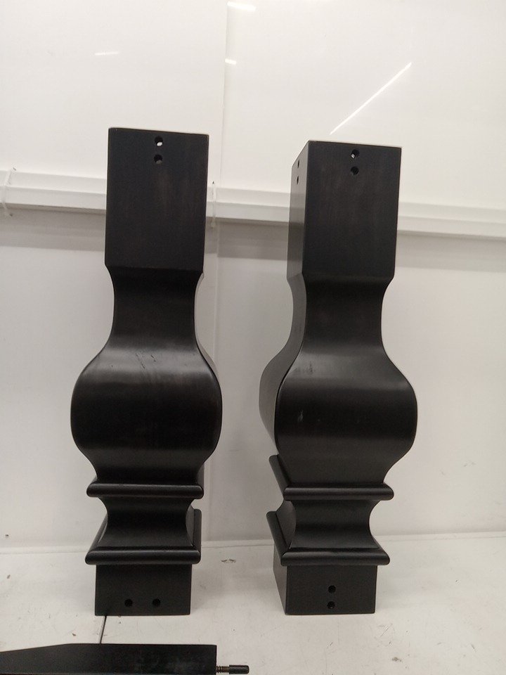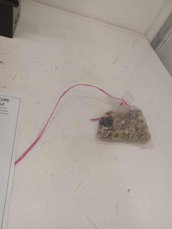 This item comes in 2 boxes. their are a few fraying and peeling spots on the bottom of this table top however this is not a cosmetic issue as when this item is assembled and in use the bottom of the table will not be visible. however the fraying and peeling spots on the legs will cause a cosmetic issue due to how it will be visible when this item is assembled. this seems to be due to shipping and handling. all vital parts for assembly are present. see photos below.