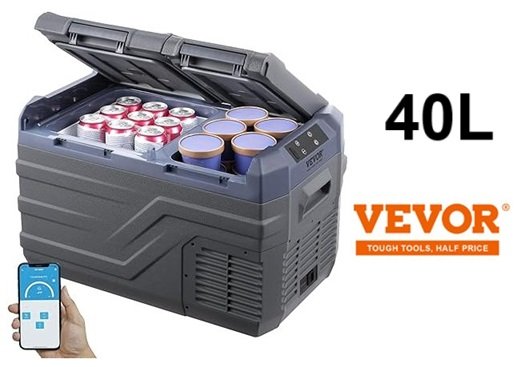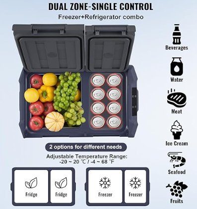 vevor car refrigerator WITH dual compartments for freezer and fridge goods - 25L - 12/24v dc - 100/240v ac - grey (model: nld55)