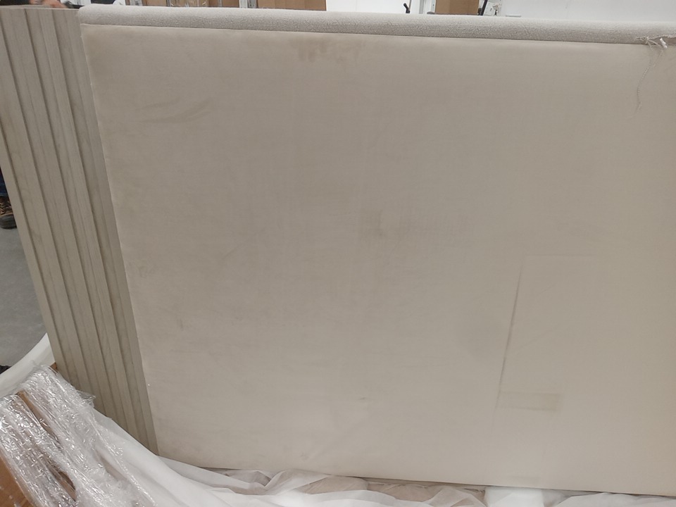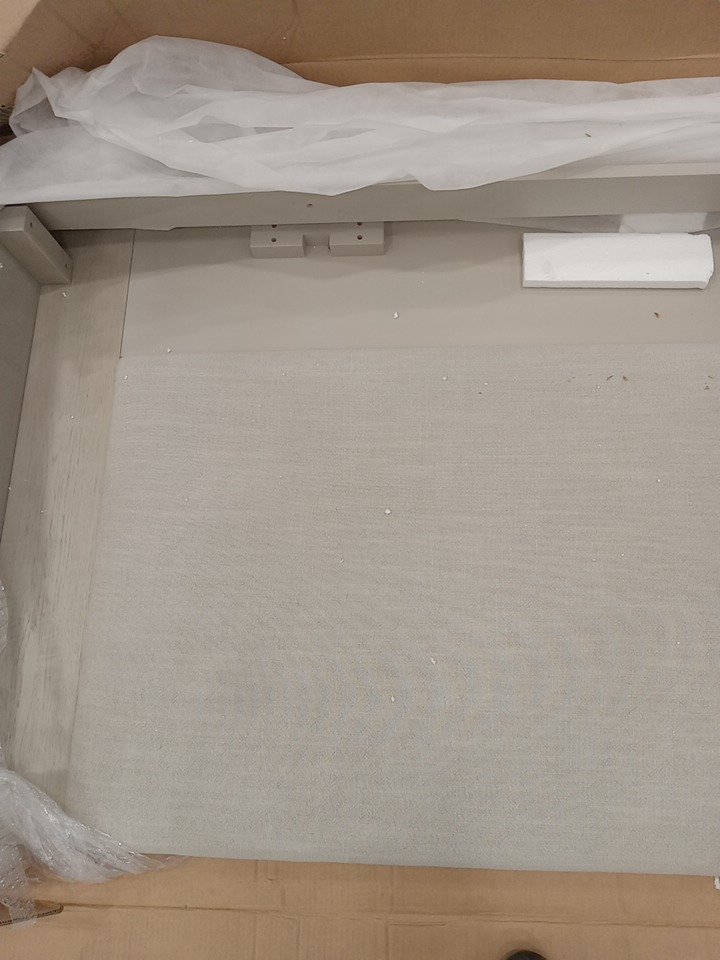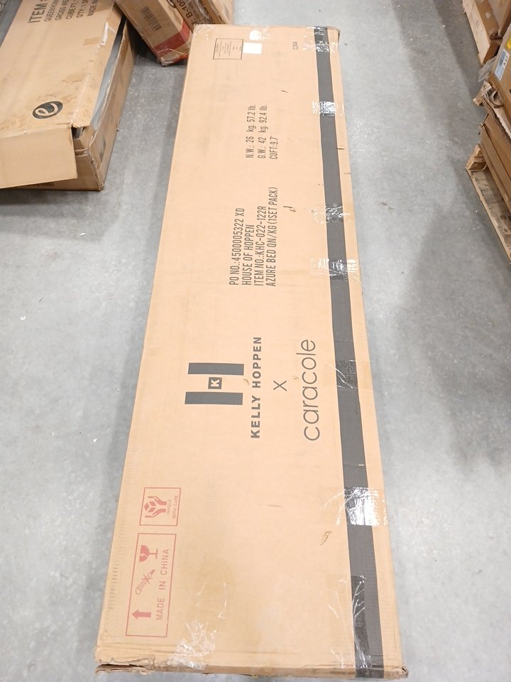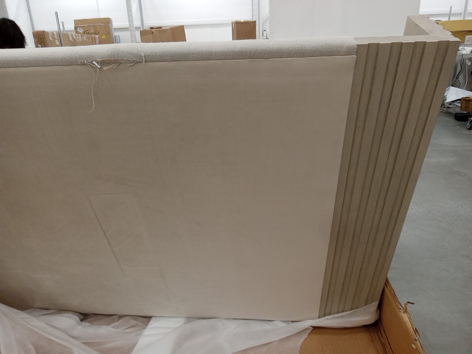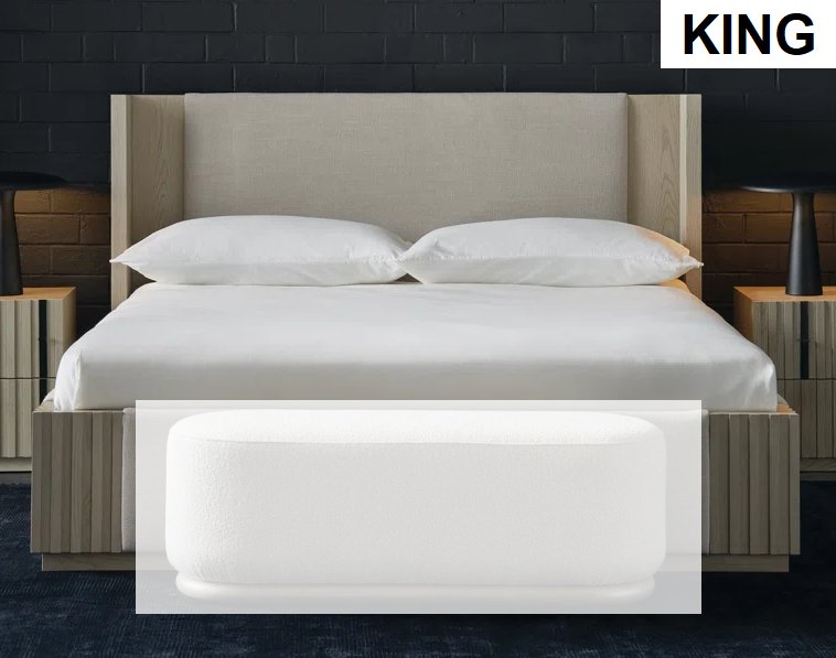 Kelly Hoppen x Caracole Azure Upholstered Bed with Soft Linen Fabric, Sculpted Curved Silhouette & Wood Trim Accents and Premium Padded High-Back Construction - KING - Grey