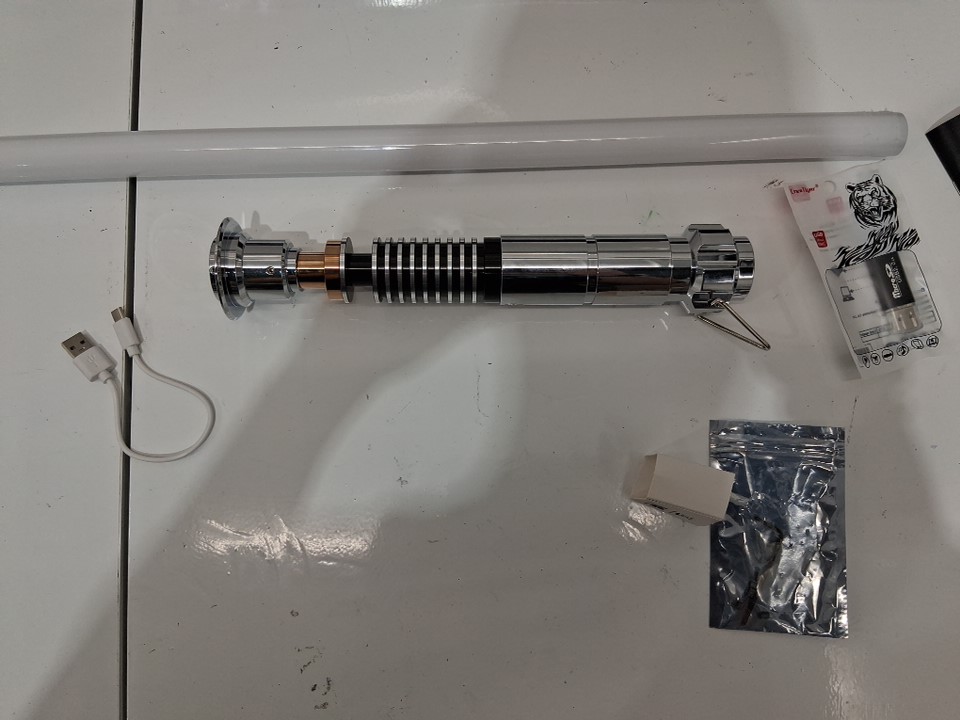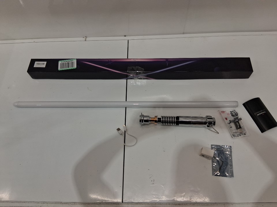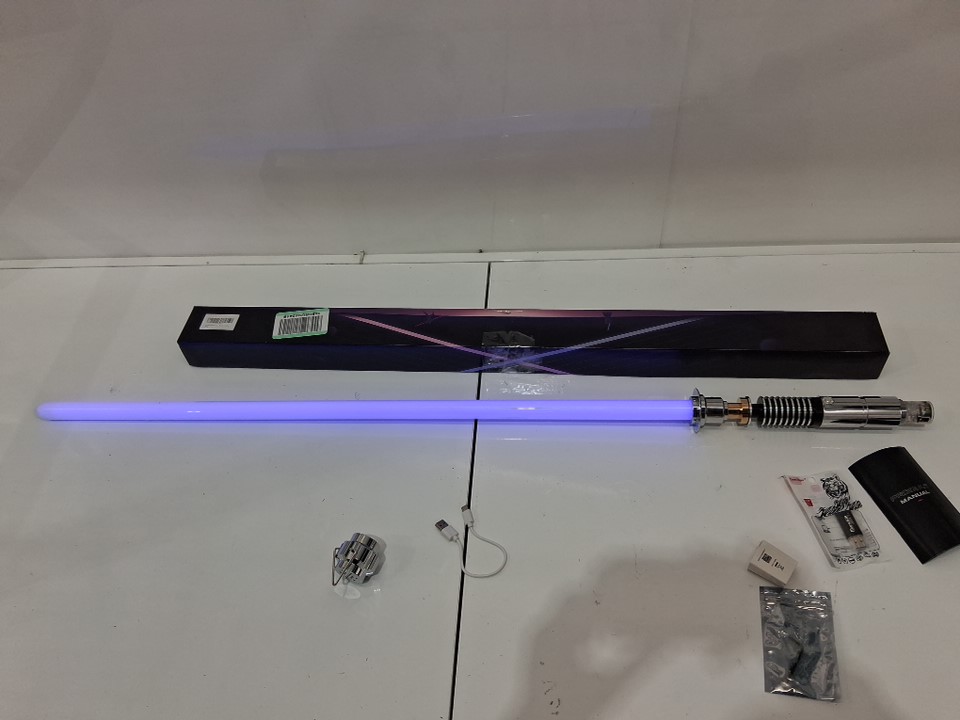 please note the product was tested for basics power and start up only. the product was discovered to have some scratches and scuff marks on the blade where it would connect to the hilt, please see photos for more details
