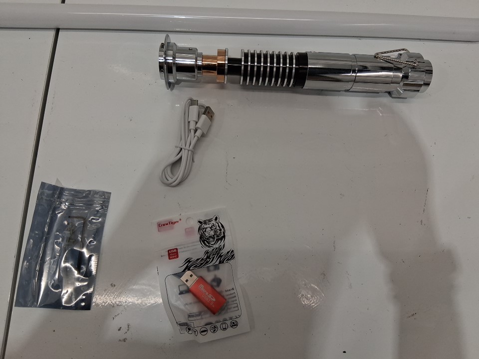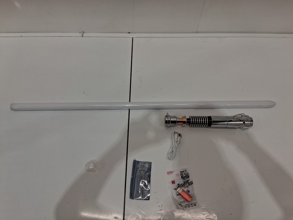 please note the product was tested for basics power and start up only. the product was discovered to have some scratches and scuff marks on the blade where it would connect to the hilt, please see photos for more details