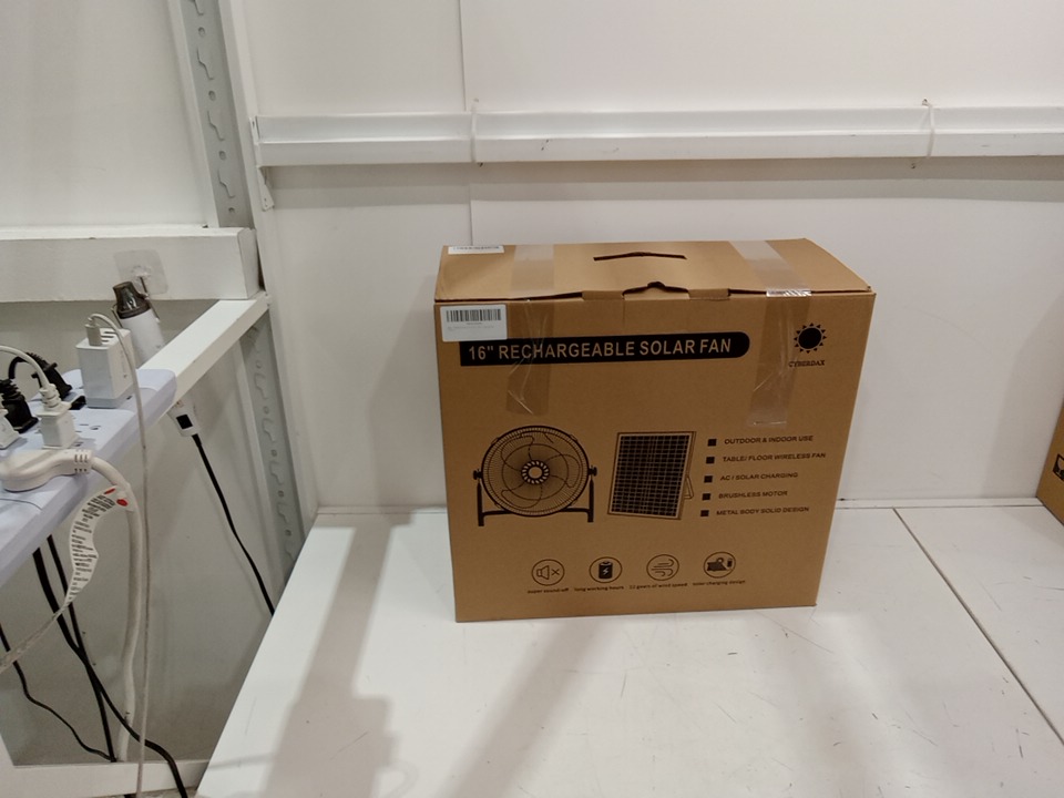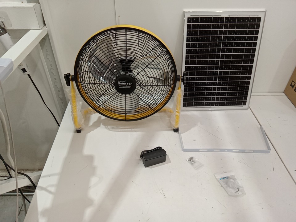 cyberdex portable rechargeable solar fan - 16" - 12 speeds - 11.1v - up to 50hrs runtime - black/yellow (model: cdx-232-16b)