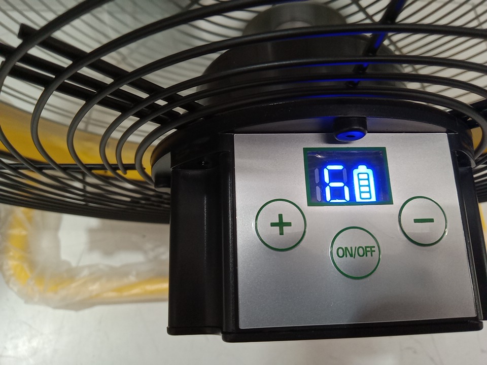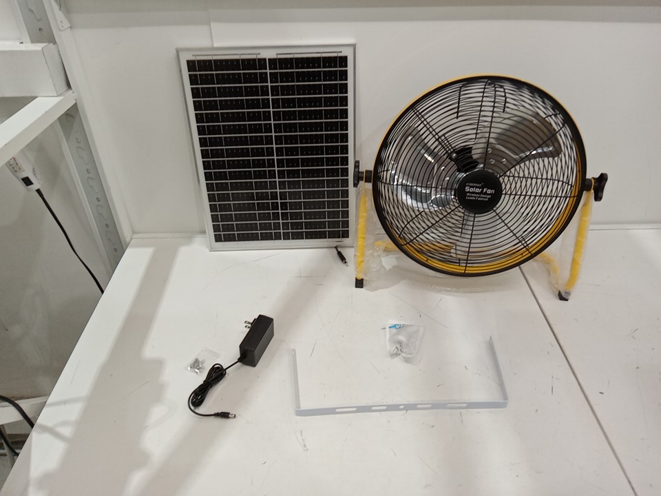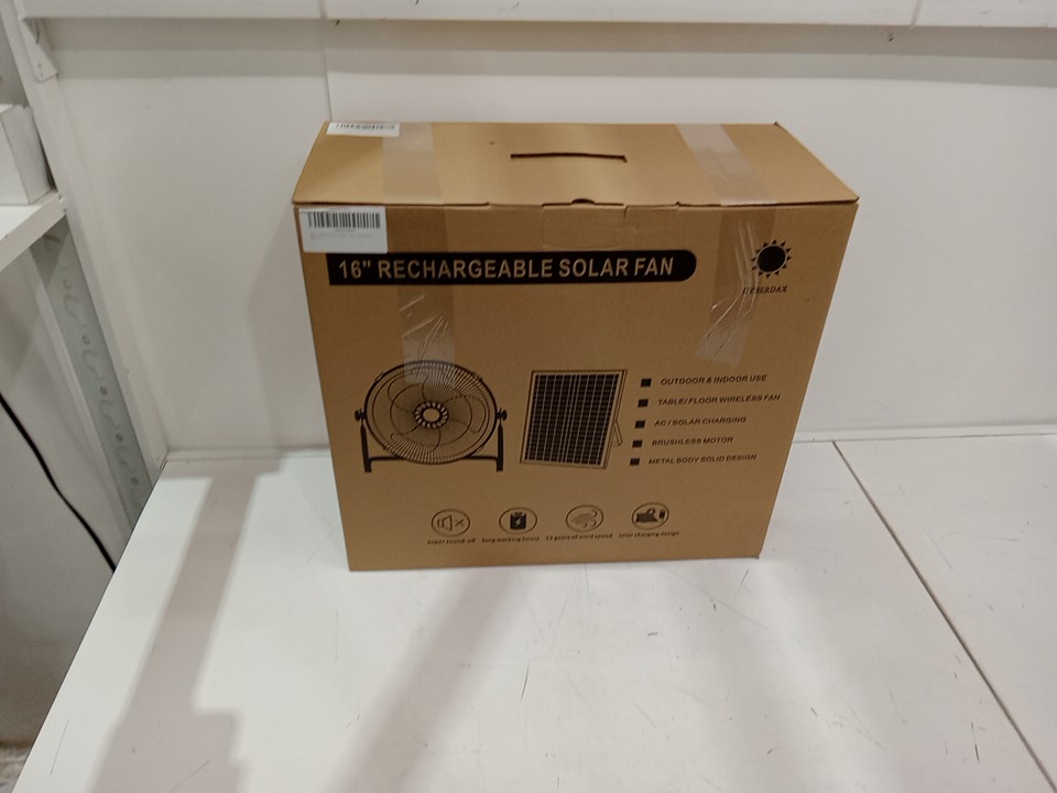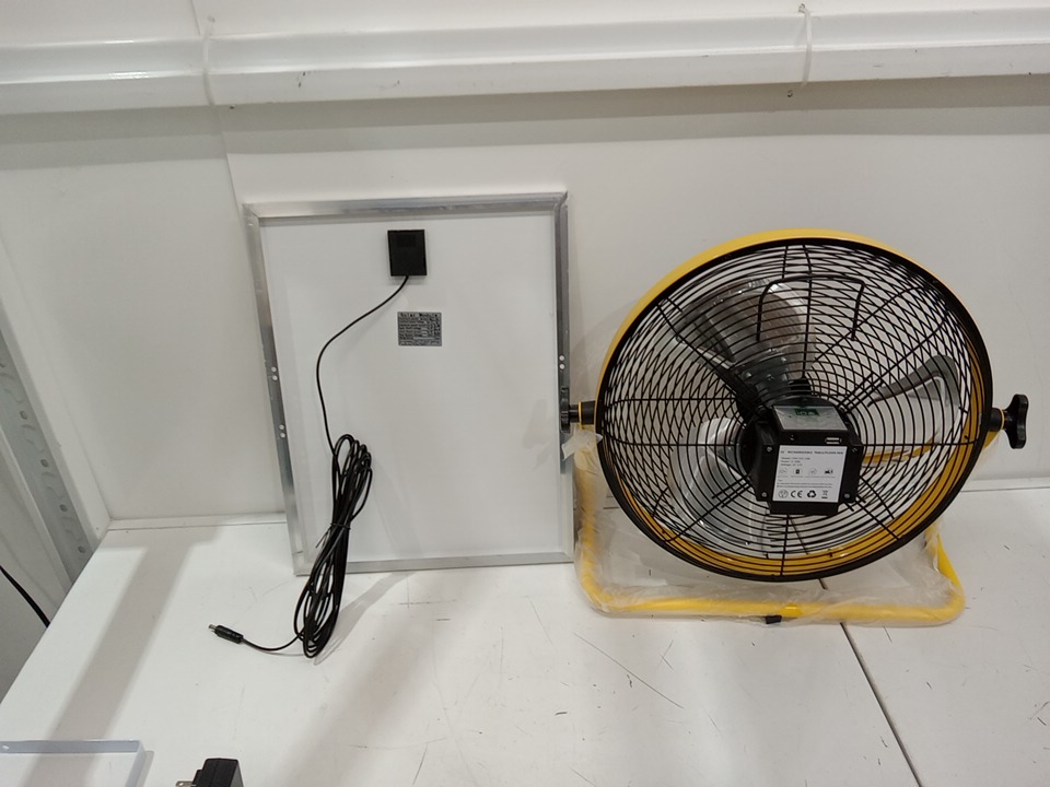cyberdex portable rechargeable solar fan - 16" - 12 speeds - 11.1v - up to 50hrs runtime - black/yellow (model: cdx-232-16b)