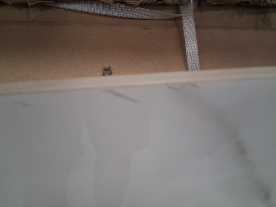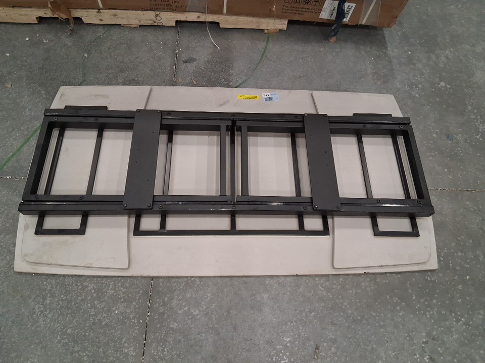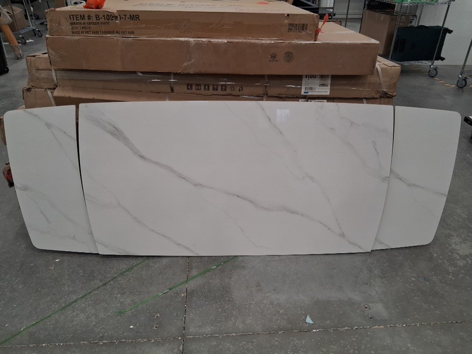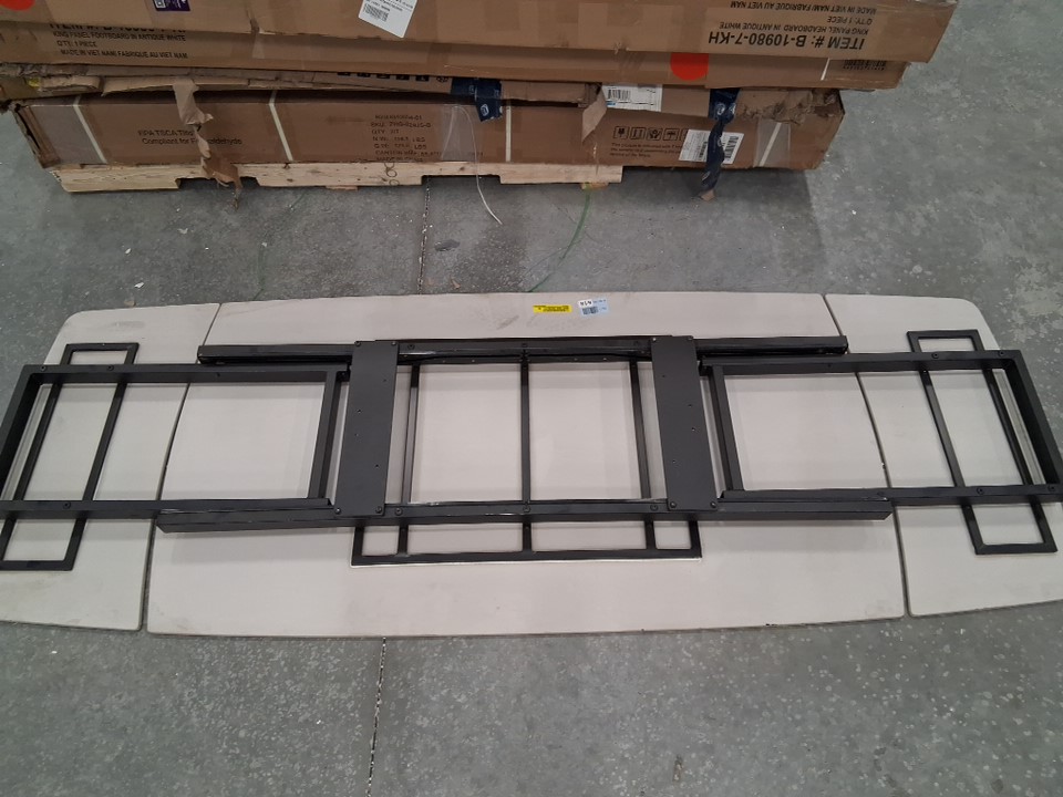 Please be aware that there are no table legs included in this listing, only the tabletop as pictured. Additionally, there is a small chip on the underside of the unextended portion and some light scuffs near one edge of the top surface, as well as some oil/lubricant residue on one side of the table - see photos. Outside of these issues, appears unused.