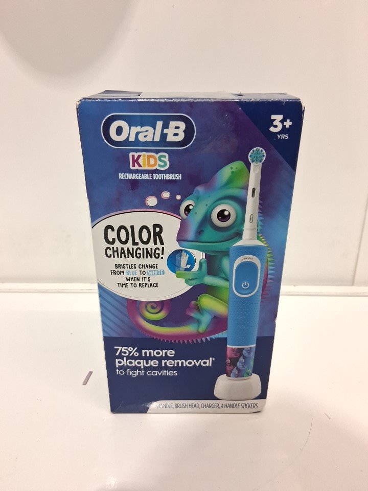 kids oral-b electric rechargeable toothbrush with charger extra soft bristles - blue (model: 3757, d100.413.2k)