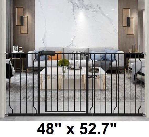 ALLAIBB EXTRA WIDE METAL PRESSURE BABY/PET GATE FOR ENTRANCEWAYS 48" X 52.7" - BLACK (MODEL:W046)