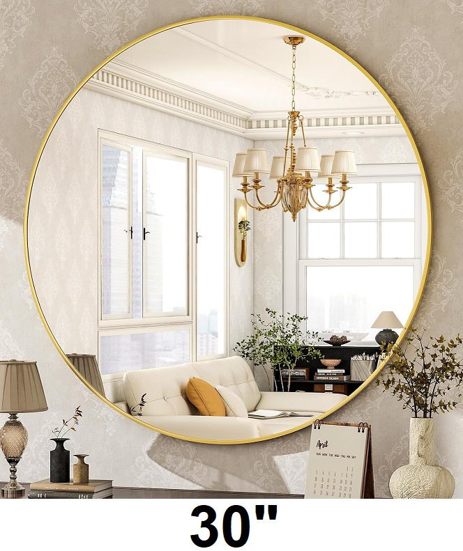 HARRITPURE Round Bathroom Mirror - 30" - Gold
