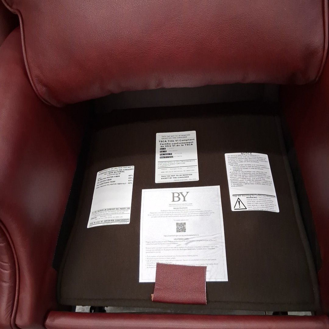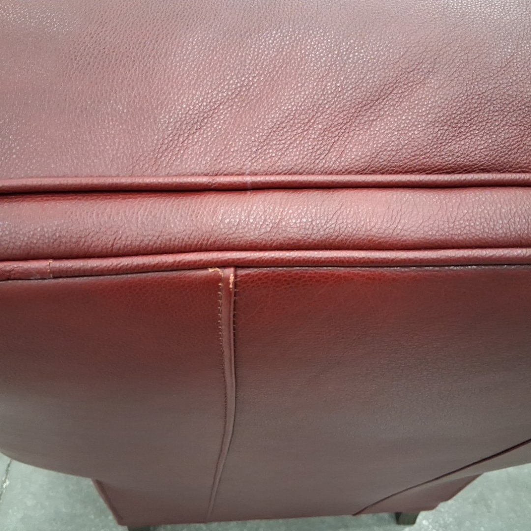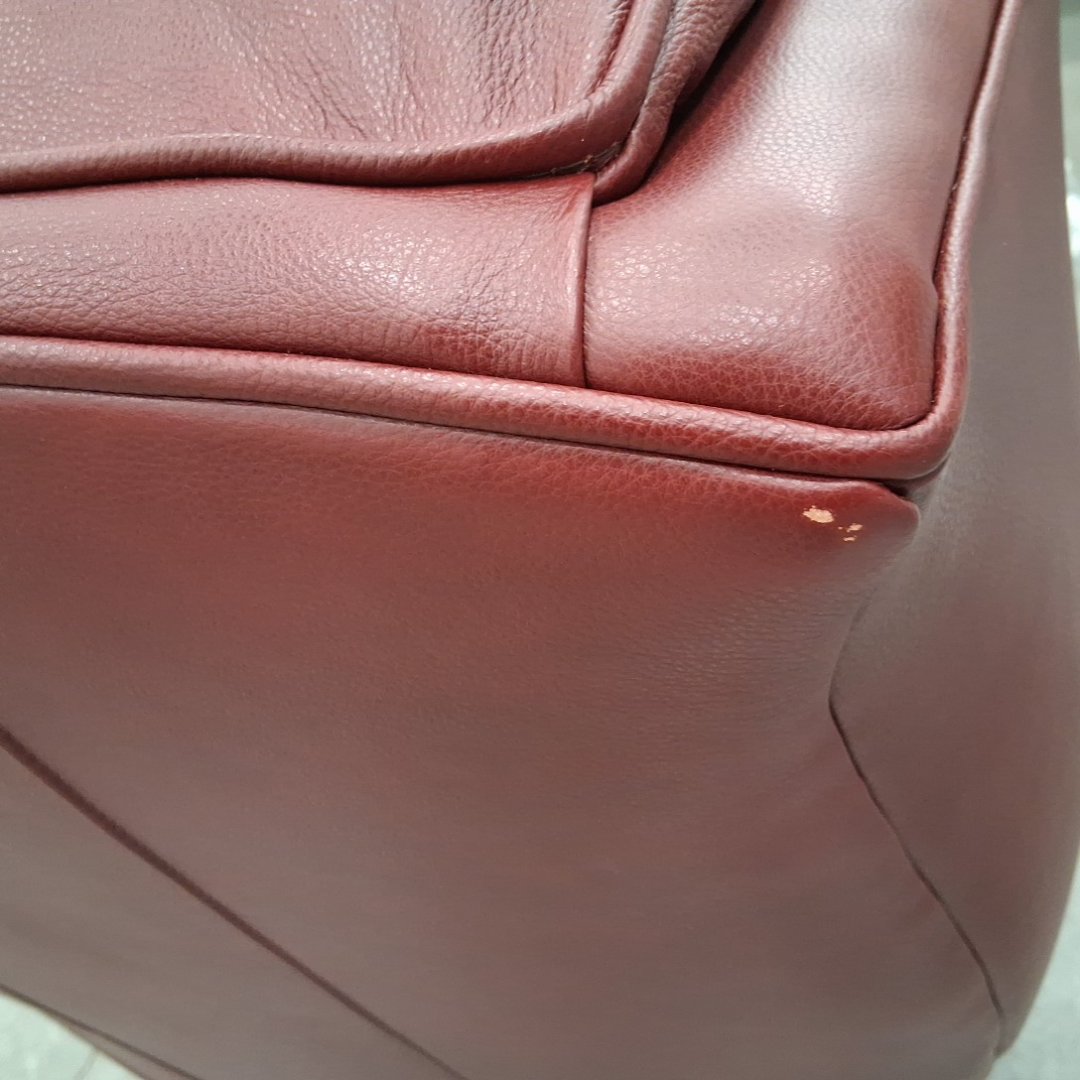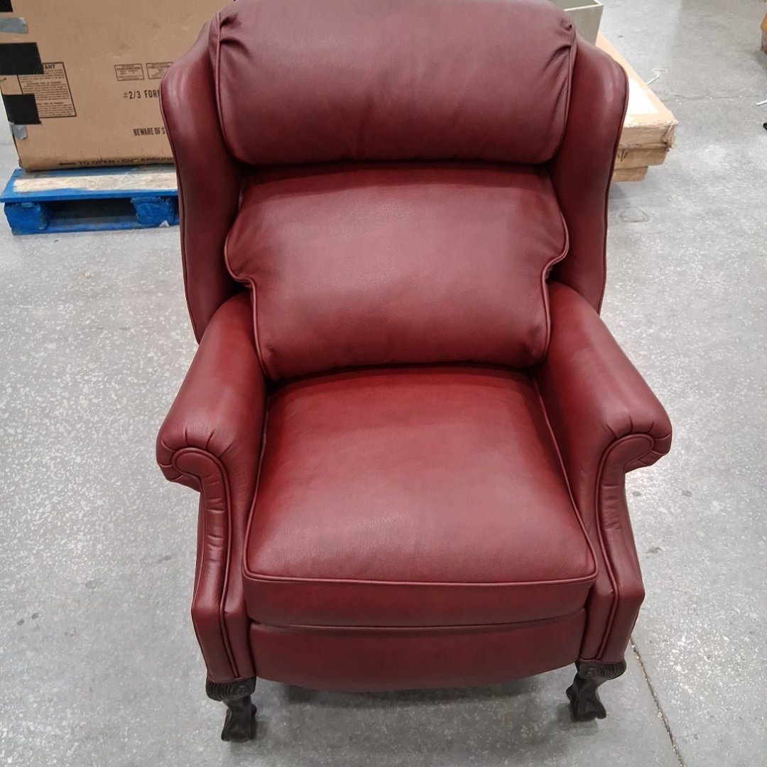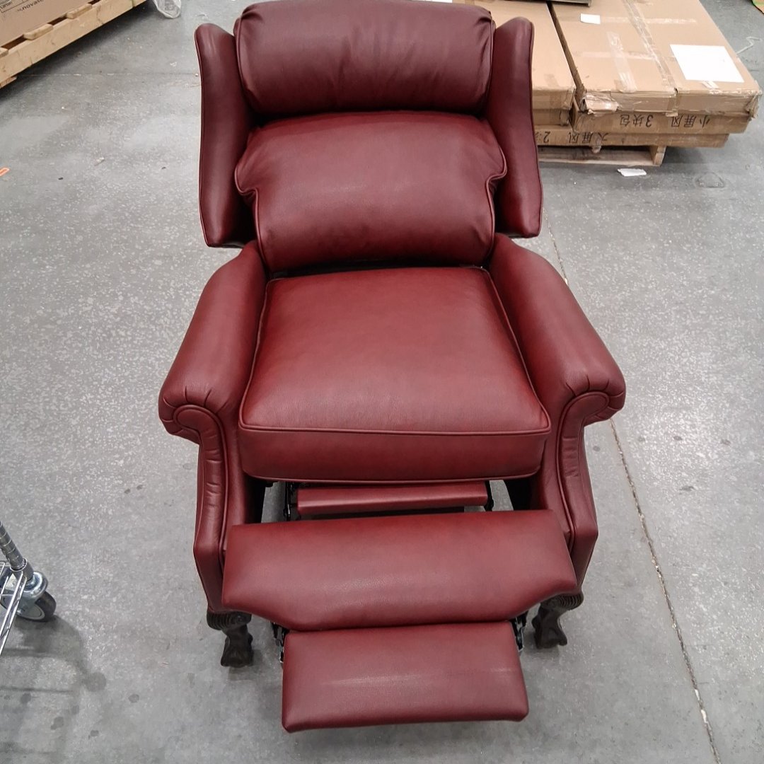 Please note, ours is burgundy and does not have the studded nails. The feet have scuffs on them. There are also a couple minor scuffs on the back at the top of the chair. (see photos)