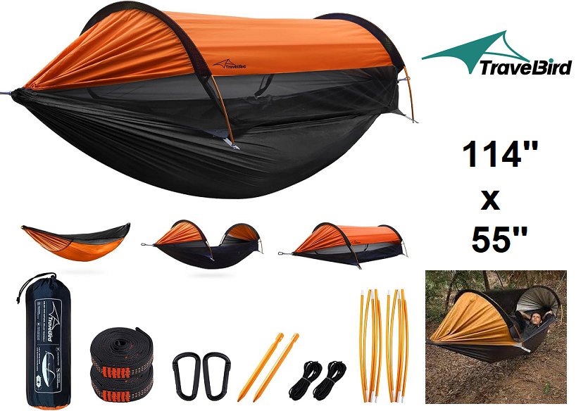 travelbird lightweight Camping Hammock Tent with Mosquito Net and Sunshade - fits 2 people - 114" x 55" - black/yellow