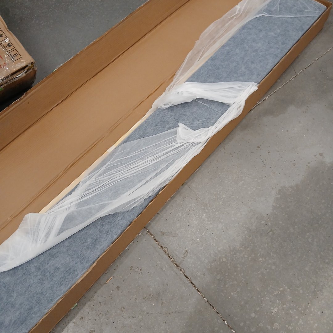 Item is new - 1 slat has a bare minimum amount of cosmetic marks. This item is decently large, please make sure to plan pick up accordingly.